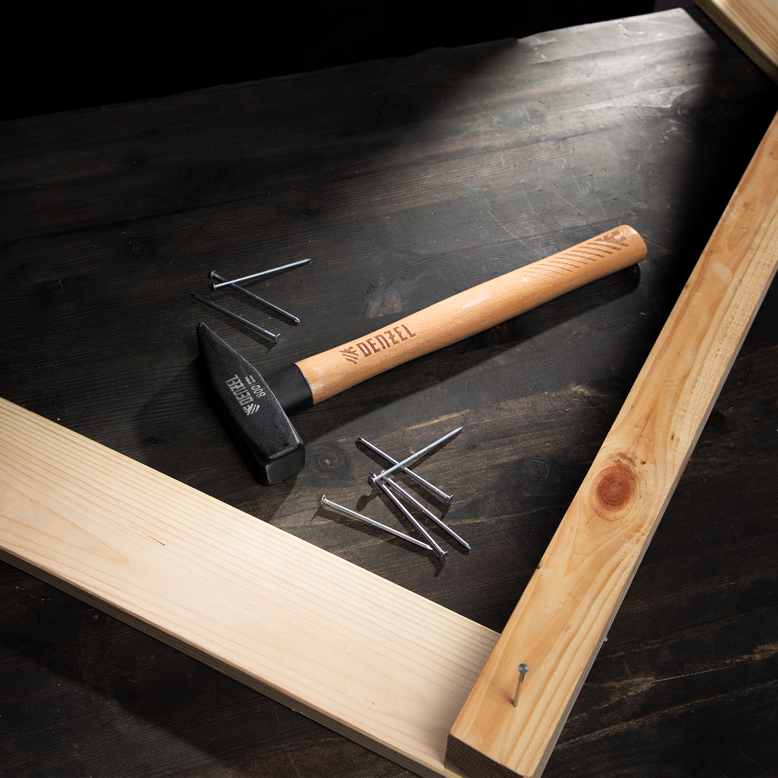 Молоток слесарный, 800 г, кованый квадратный боек, буковая рукоятка Denzel в Челябинске
