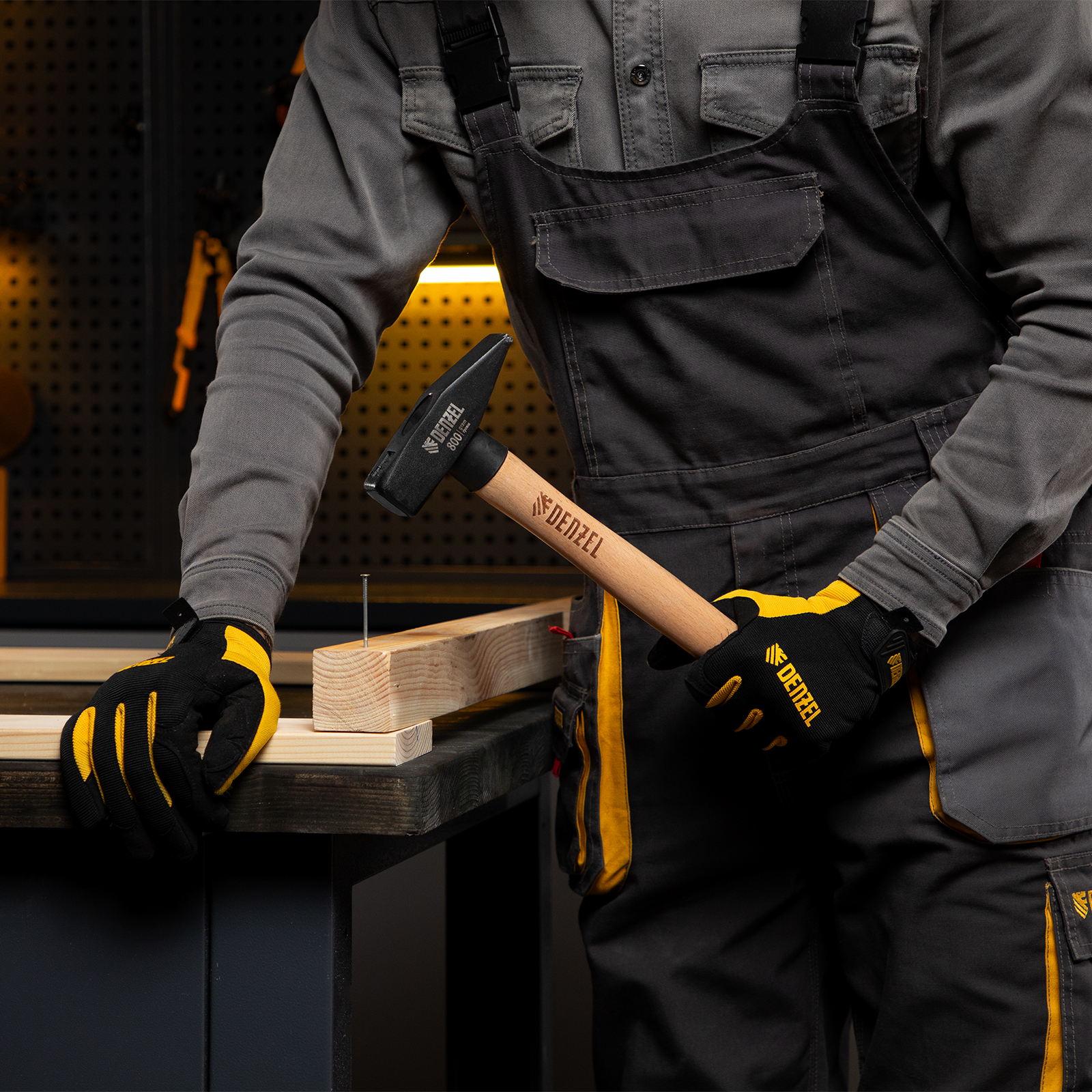 Слесарный молоток Denzel 10435 с квадратным кованым бойком весом 800 г предназначен для забивания гвоздей и другого крепежа и для работы с металлическими заготовками. Инструмент применяется во время слесарных или столярных работ в быту, также будет полезен профессионалам.