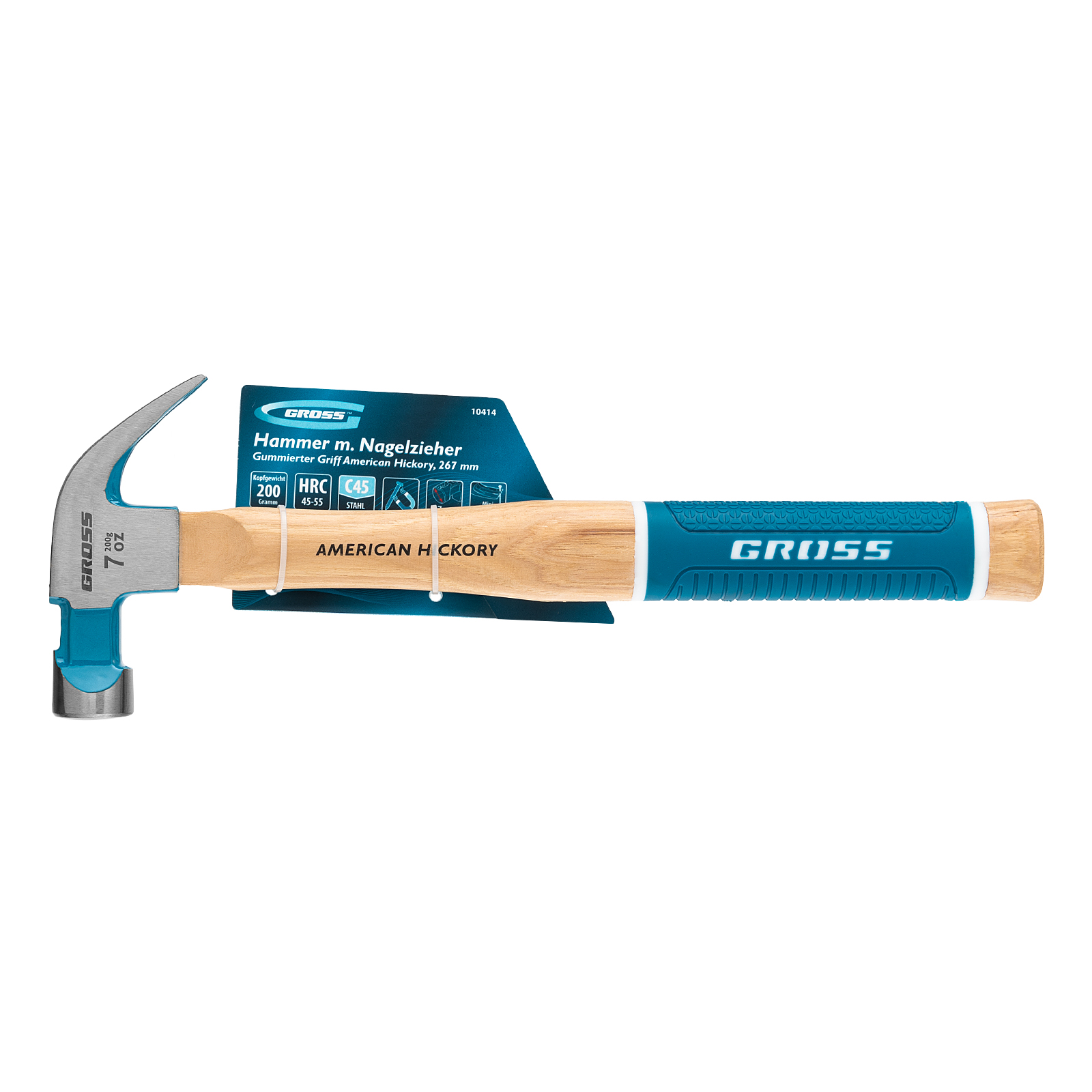 Молоток-гвоздодер, 200 г, угол 45, магнит, обрезиненная рукоятка American hickory GROSS в Челябинске