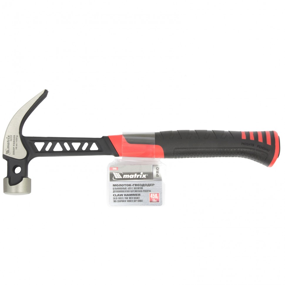 Молоток-гвоздодер, 450 г, цельнокованый, боек с магнитом, двухкомпонентная обрезиненная рукоятка Matrix Pro в Челябинске