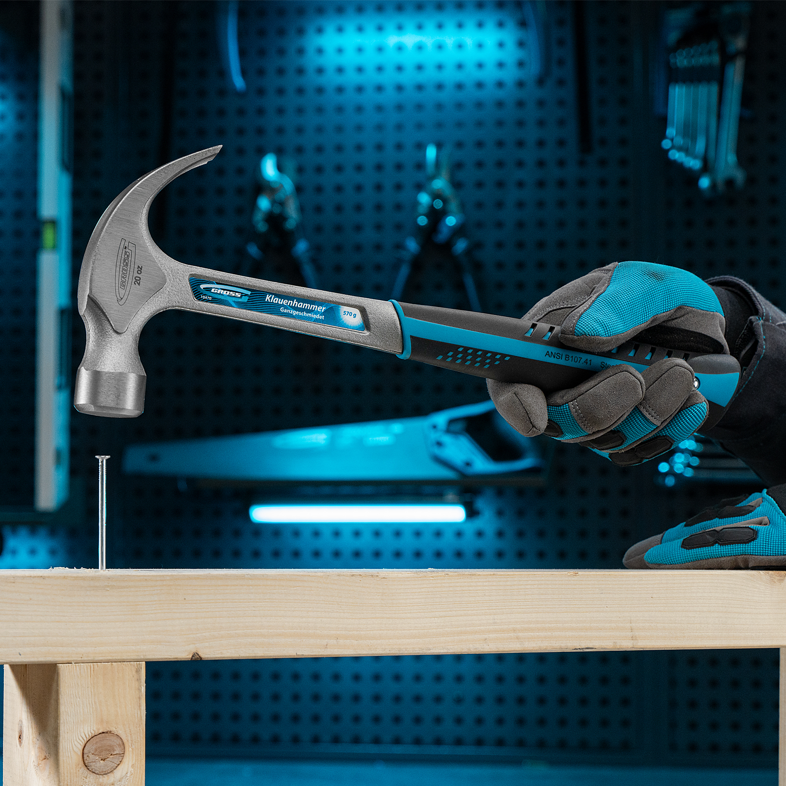 Цельнокованый молоток-гвоздодер Gross 10470 с рабочей головкой весом 570 г и трехкомпонентной рукояткой предназначен для забивания гвоздей и извлечения застрявшего крепежа. Гвозди удобно подцеплять и выпрямлять при помощи изогнутого плоского носка с клиновидной прорезью. Молоток рекомендован как для домашнего, так и профессионального применения.