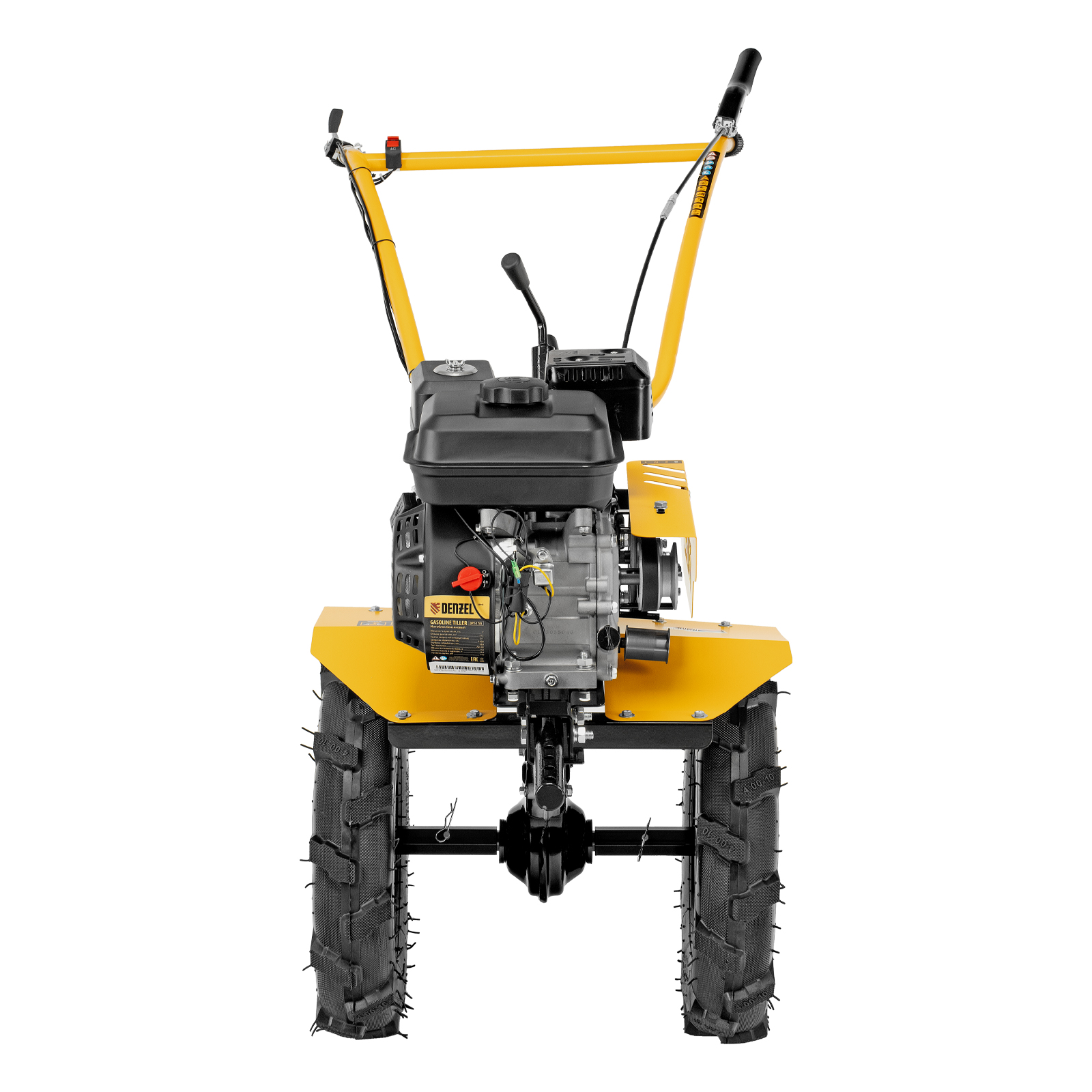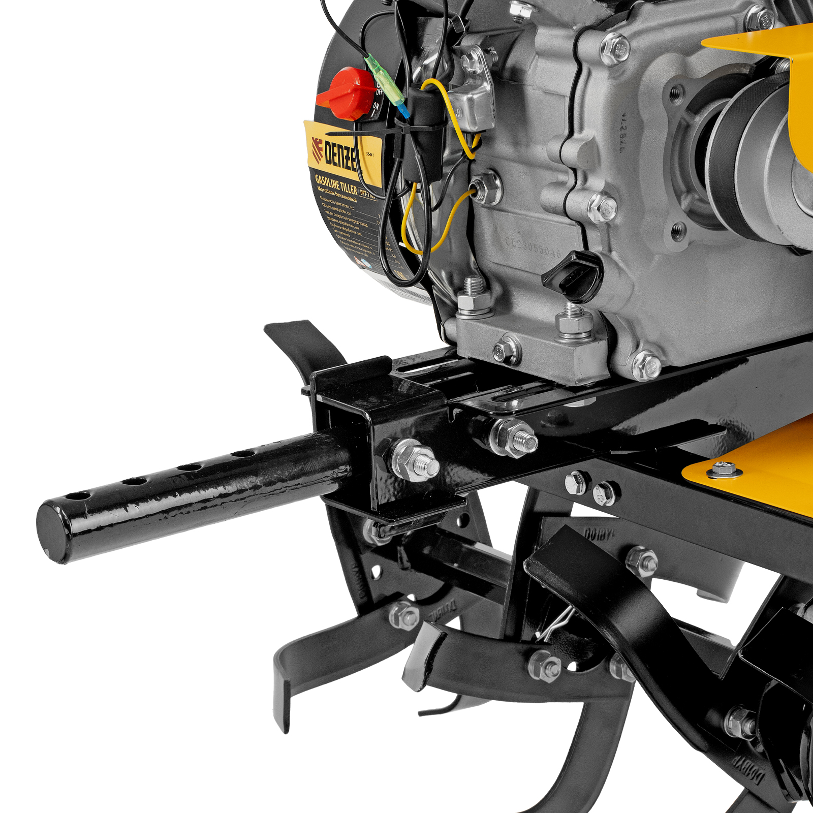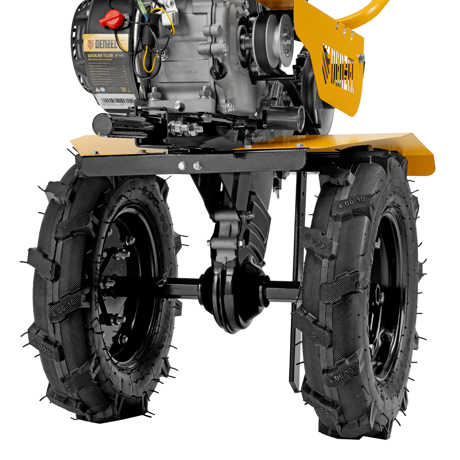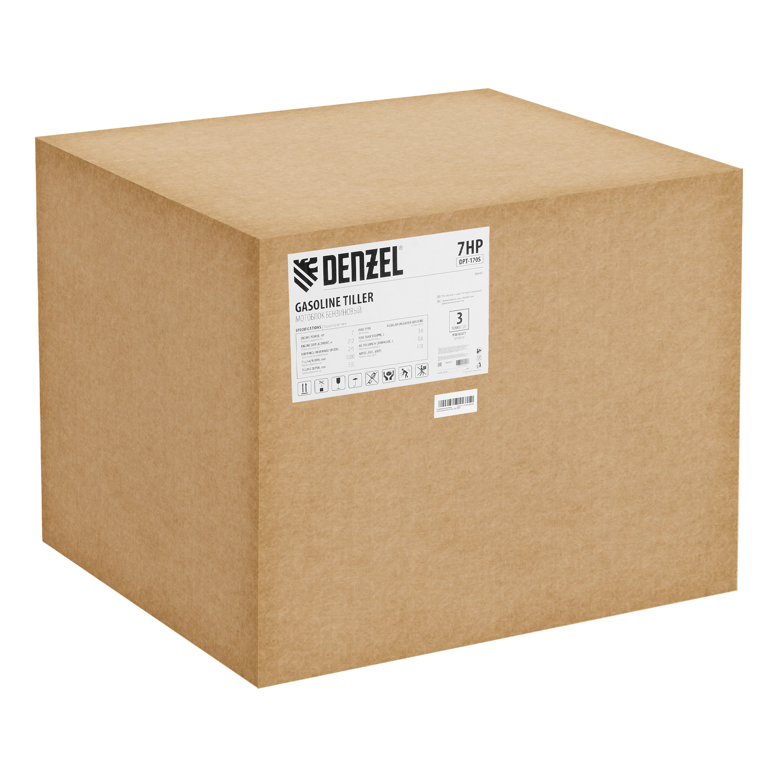 Мотоблок Denzel DPT-170S 56441 с двигателем мощностью 7 л. с., ременным механизмом сцепления, фрезами 3 х 4, шкивом отбора мощности (ШОМ) и коробкой передач 2В/1Н предназначен для проведения сельскохозяйственных работ. Максимальная ширина обработки составляет 1000 мм, глубина — 350 мм. Фрезы собираются из двух двойных и двух одинарных секций, что позволяет регулировать ширину вспашки. ,Шкив отбора мощности и универсальный кронштейн диаметром 30 мм позволяют установить любое навесное оборудование Denzel, например. плуг, окучник, картофелевыкапыватель. Такое решение значительно расширяет возможности мотоблока и позволяет минимизировать расходы на закупку сельскохозяйственной техники.