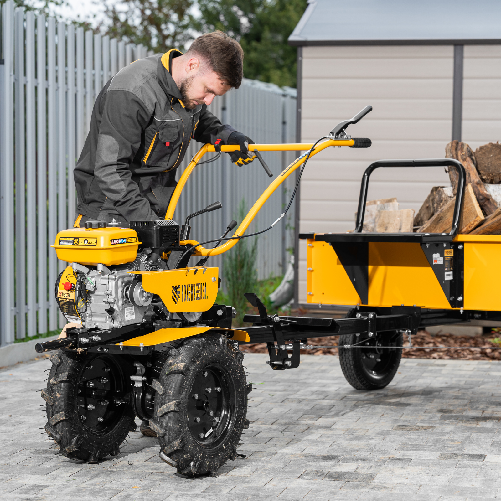 - Удобная работа — основные элементы управления расположены на рукоятках, для включения сцепления и регулировки оборотов двигателя не нужно наклоняться.