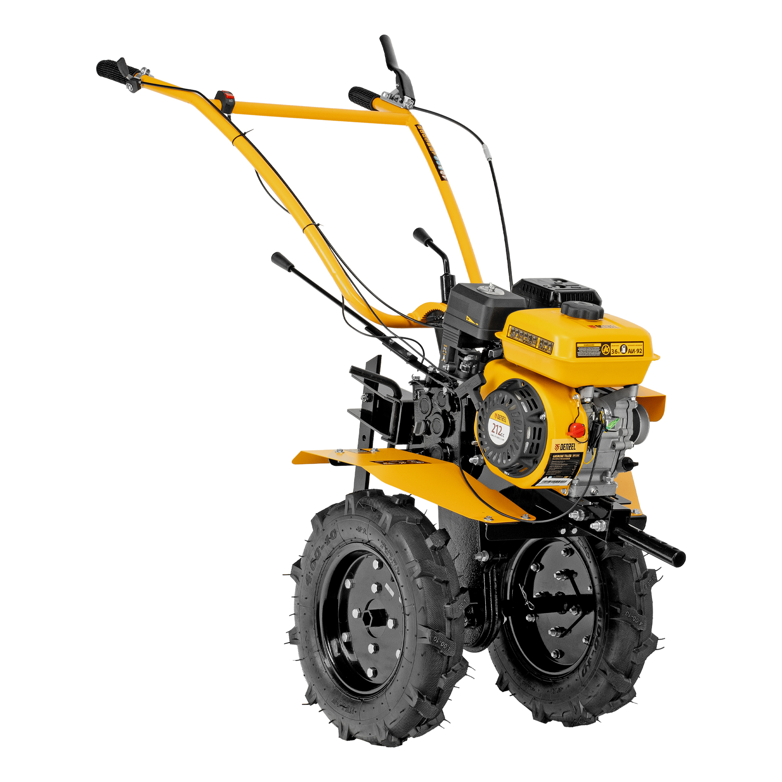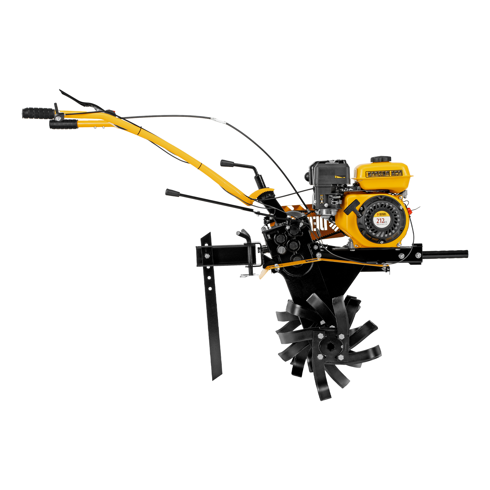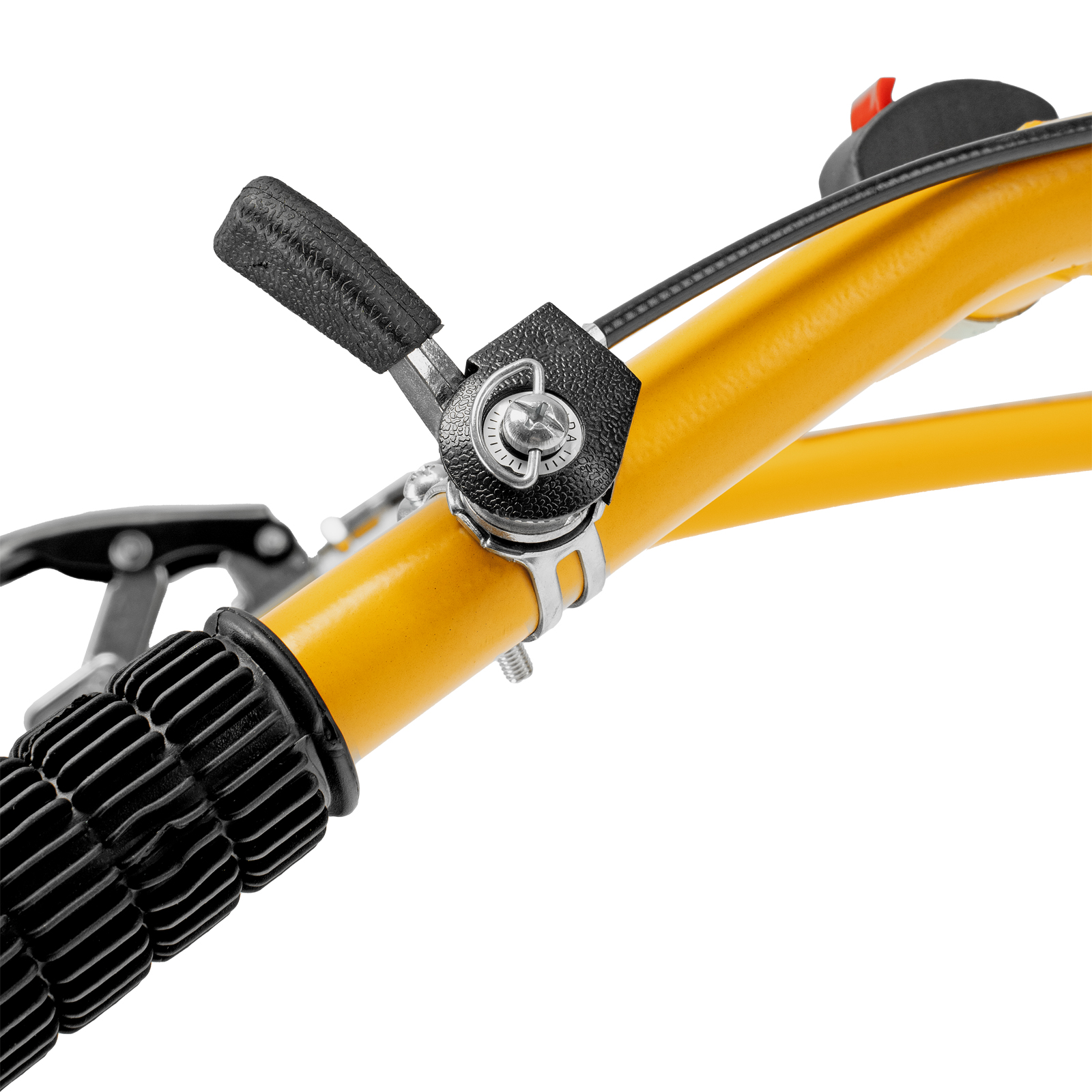 - Удобная работа — основные элементы управления расположены на рукоятках, для включения сцепления и регулировки оборотов двигателя не нужно наклоняться.