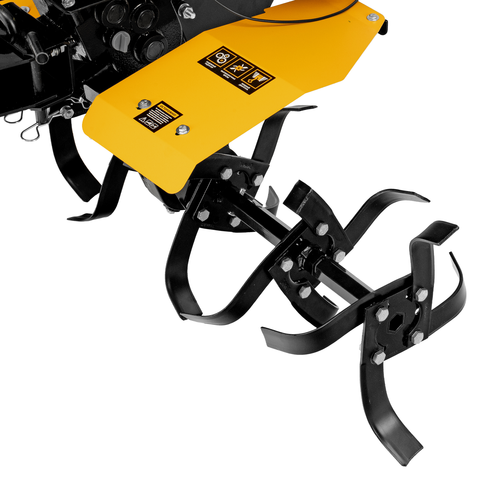 - Настраиваемая глубина вспашки — степень погружения фрез в почву можно задать, отрегулировав сошник по высоте.