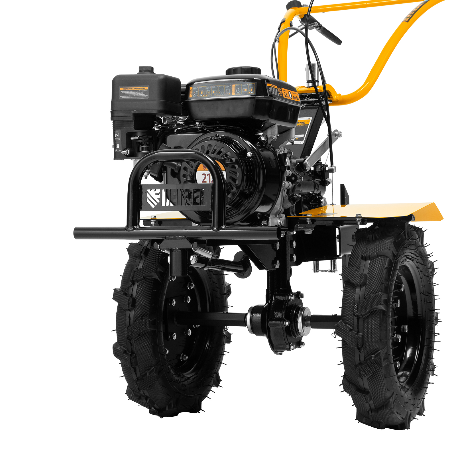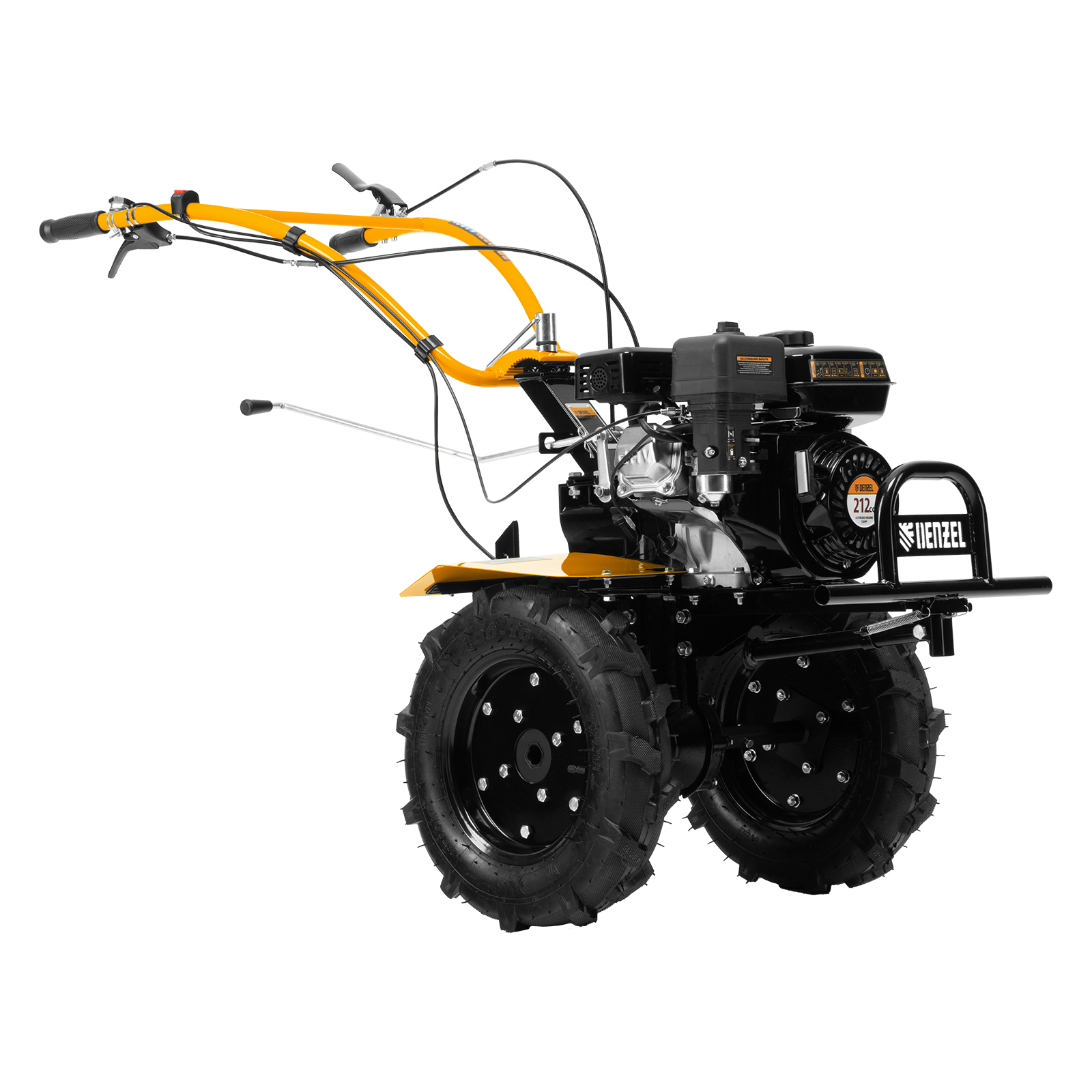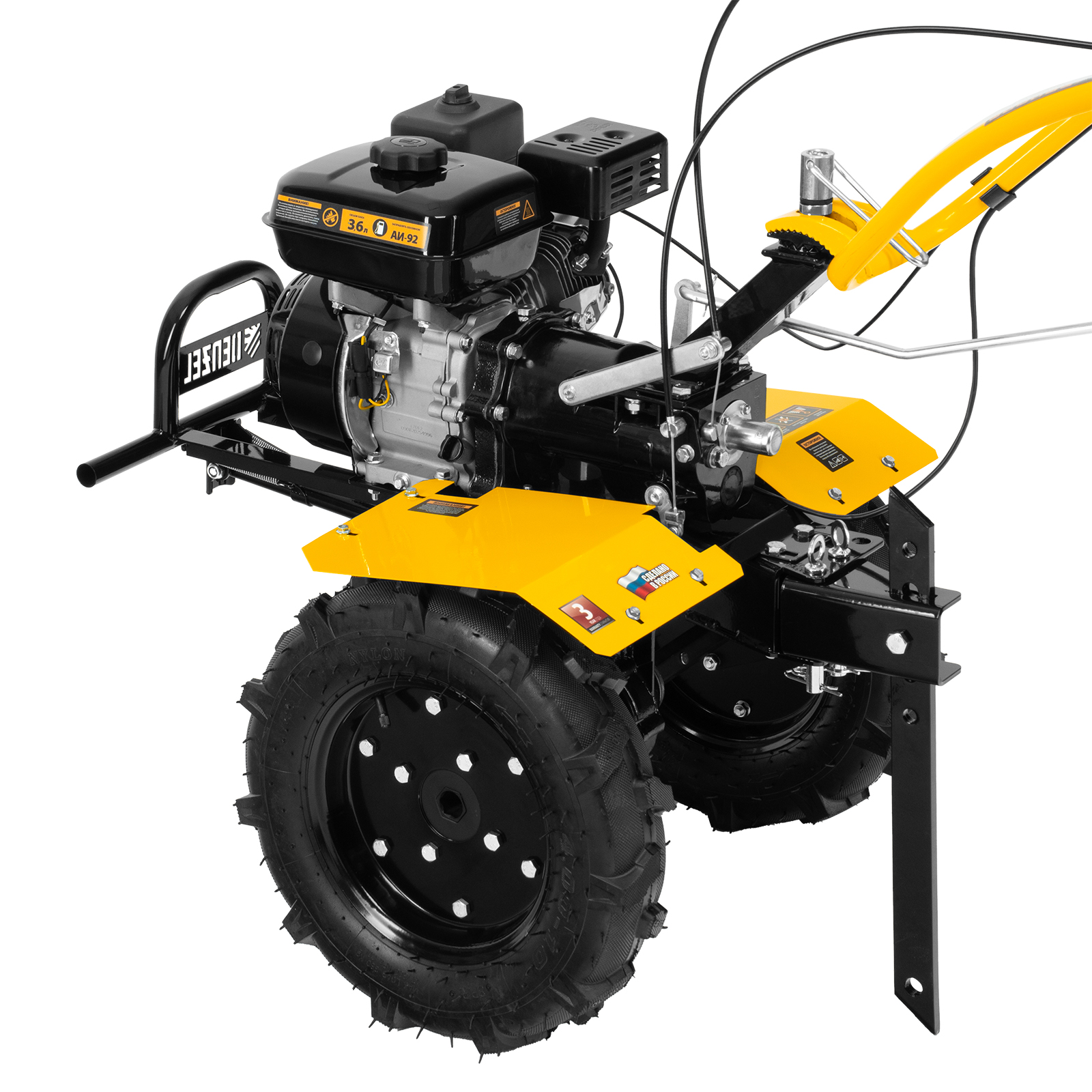 - Комфортная транспортировка — усиленная рукоятка-бампер позволяет с удобством перемещать и загружать мотоблок в транспорт.