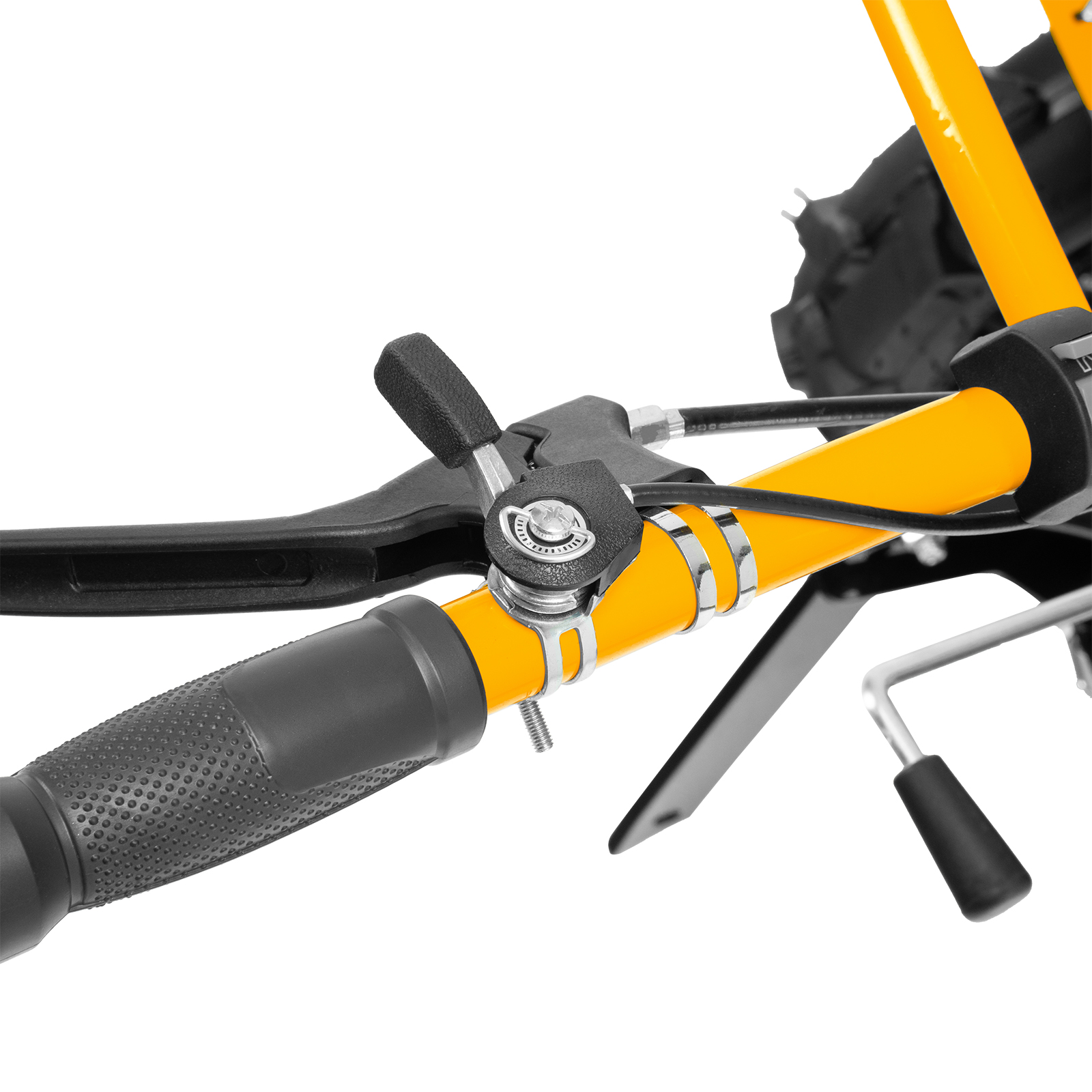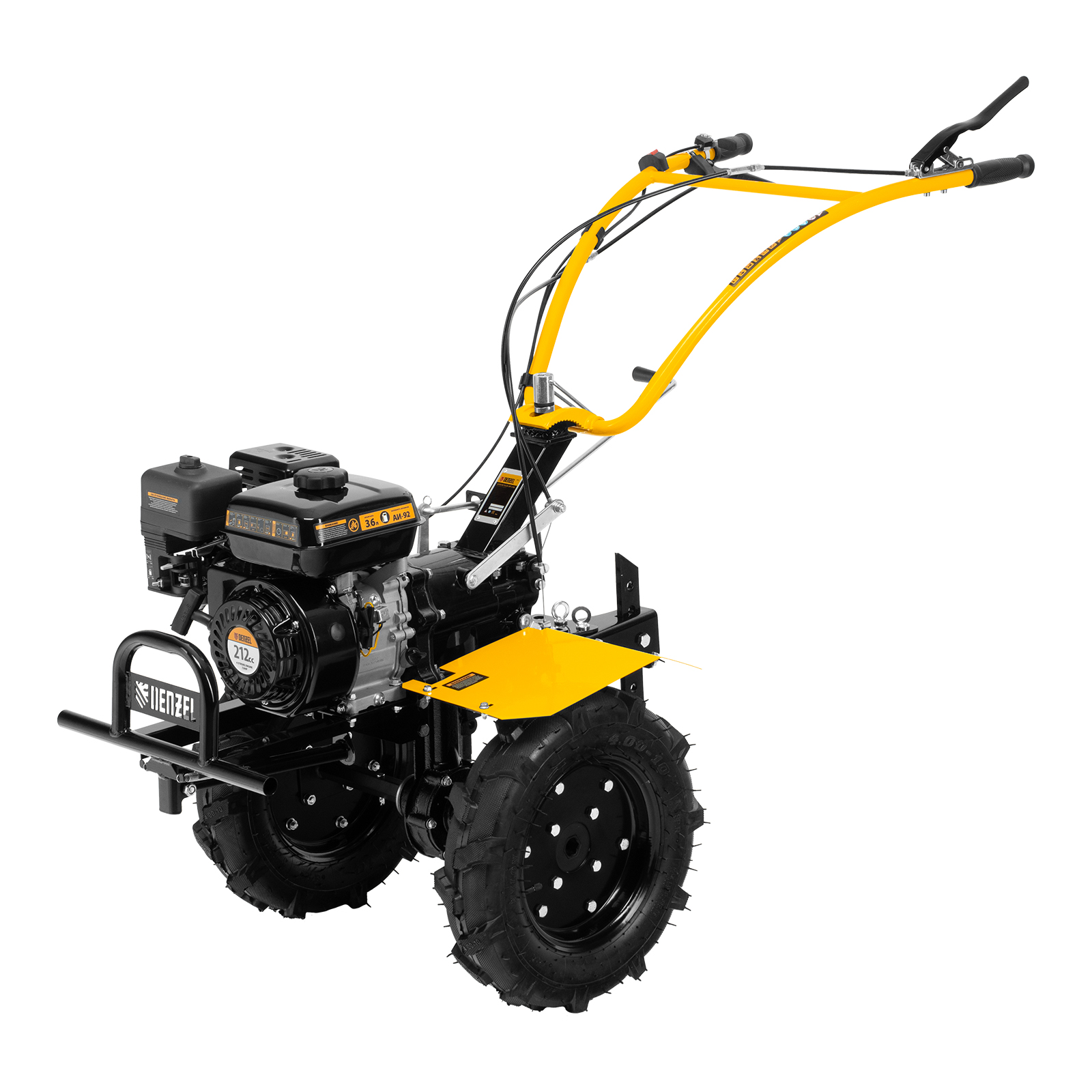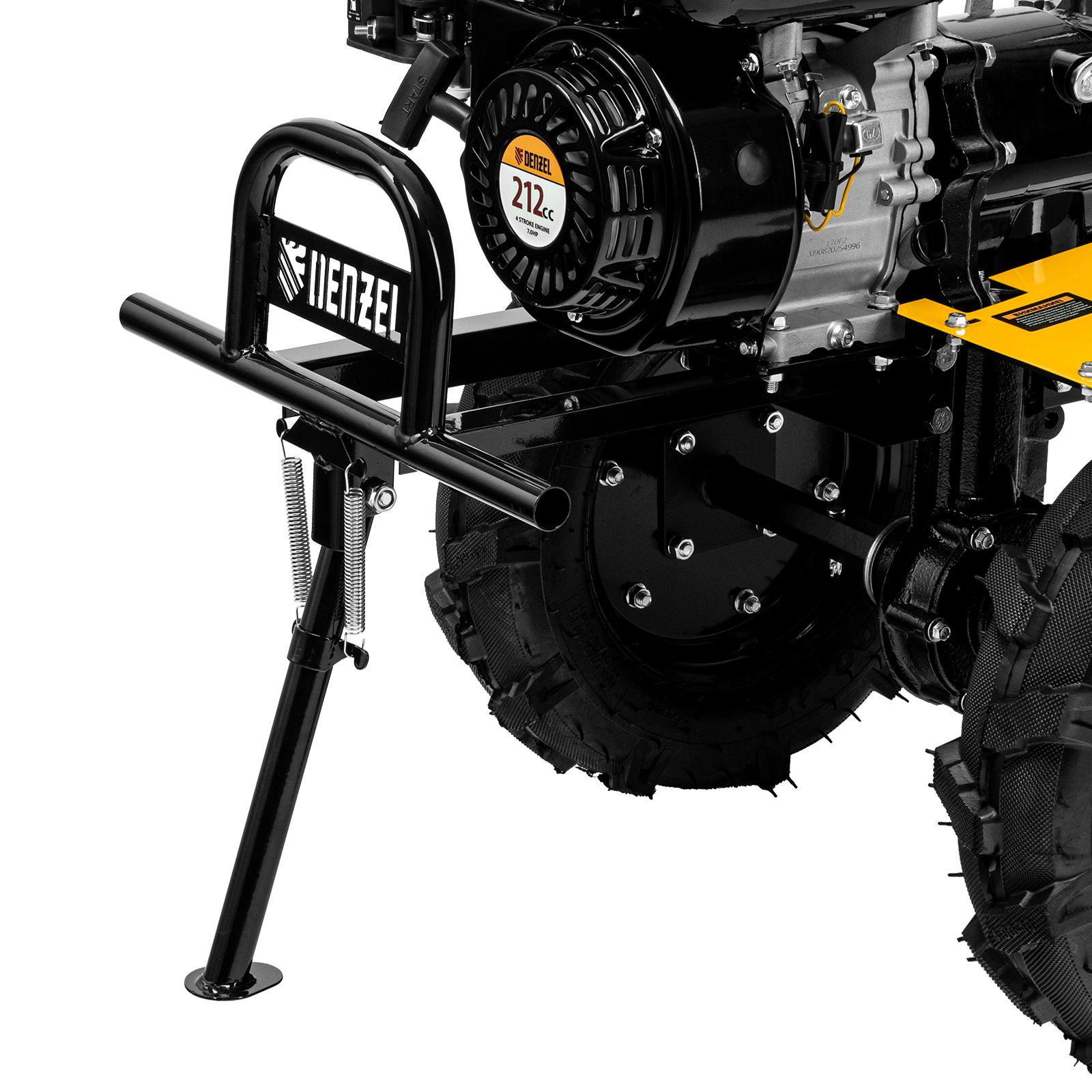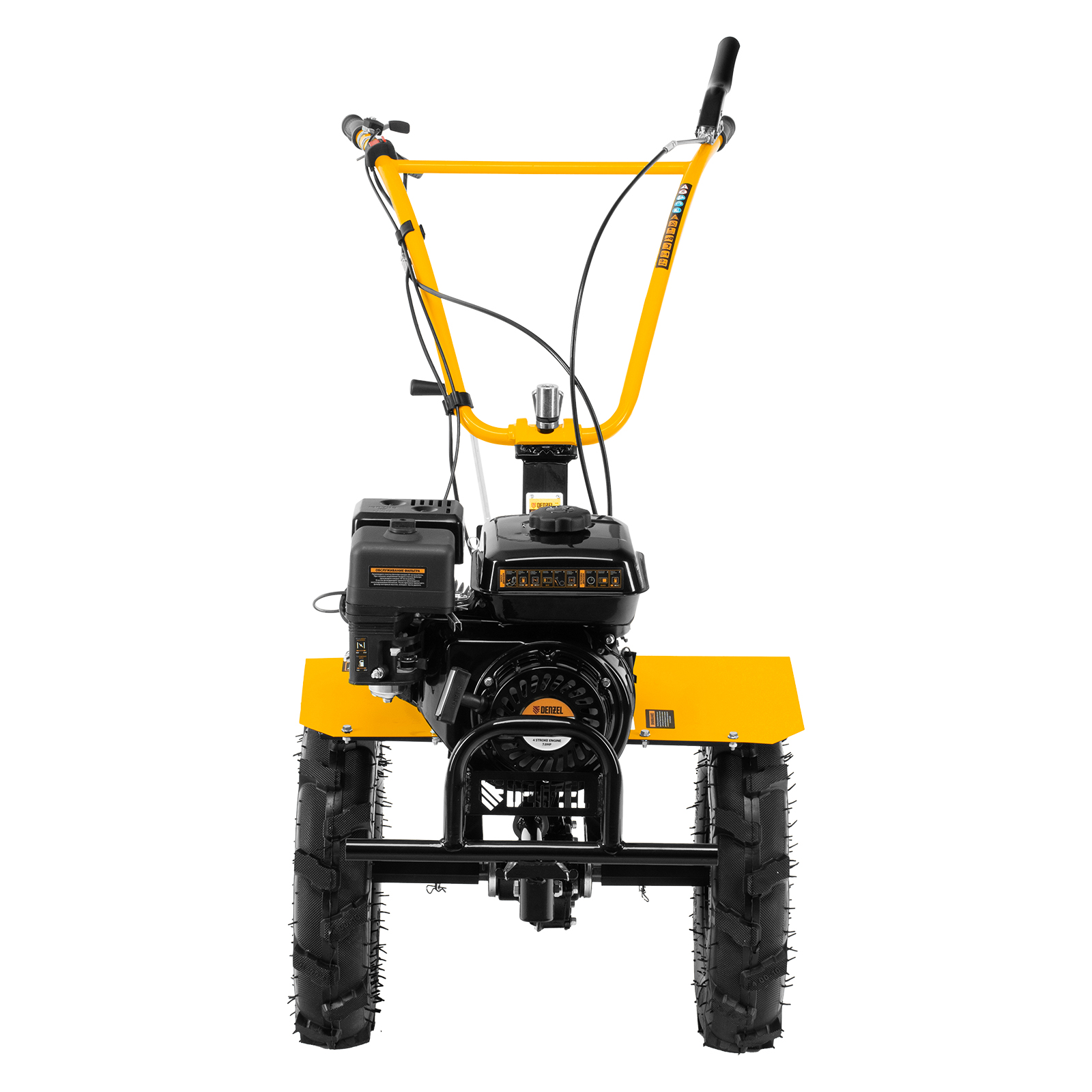 - Комфортная транспортировка — усиленная рукоятка-бампер позволяет с удобством перемещать и загружать мотоблок в транспорт.
