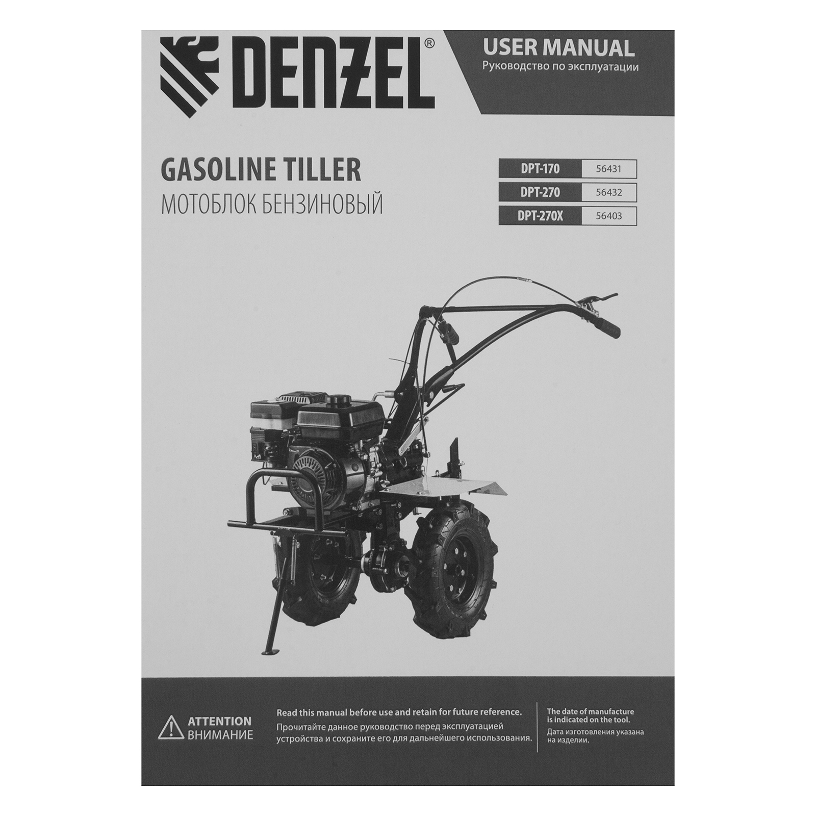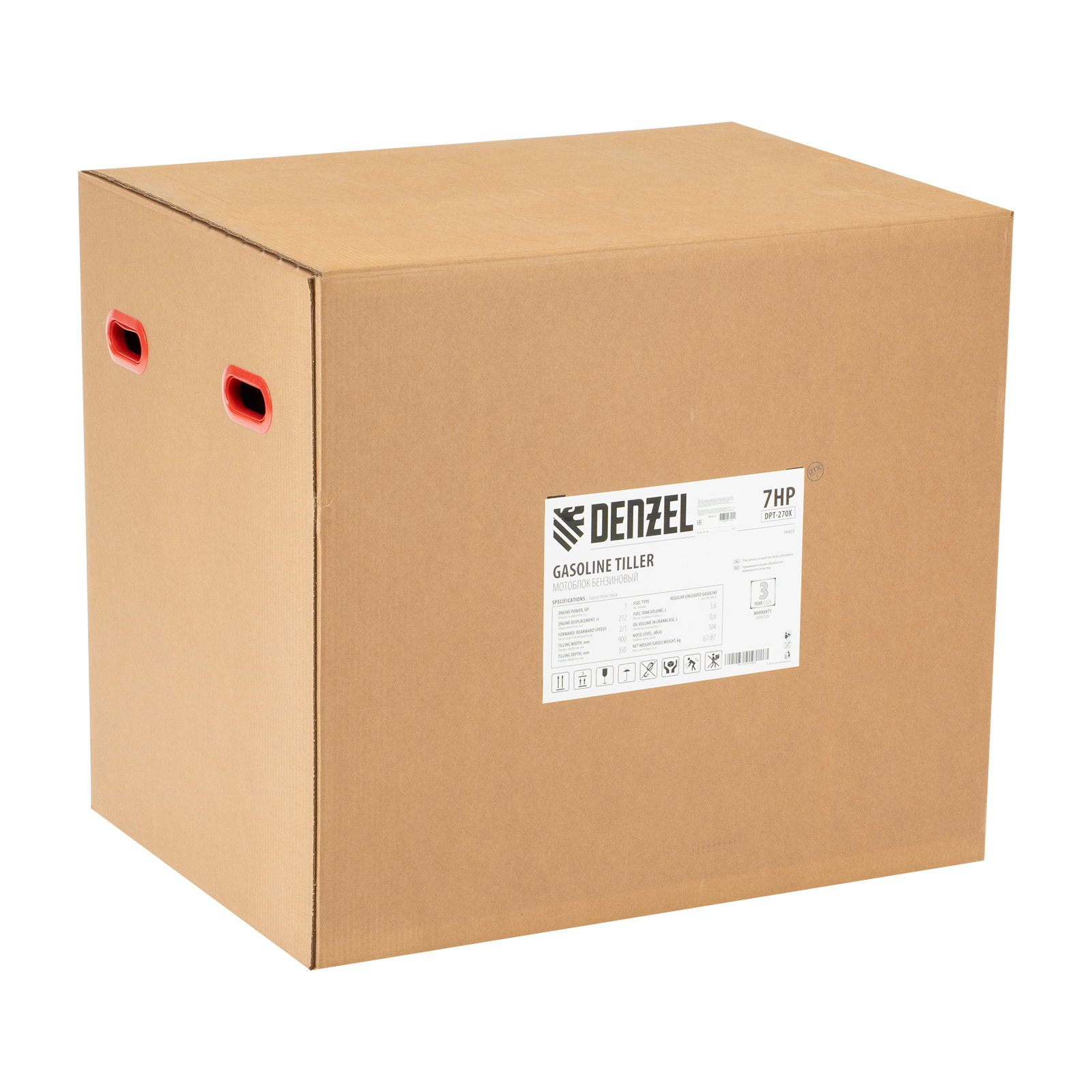 Мотоблок DPT-270X, 7 л.с, дисковое сцепление, ширина 90 см, глубина 35 см, фрез 3 х 4, ВОМ, передачи 2В/1Н Denzel в Челябинске