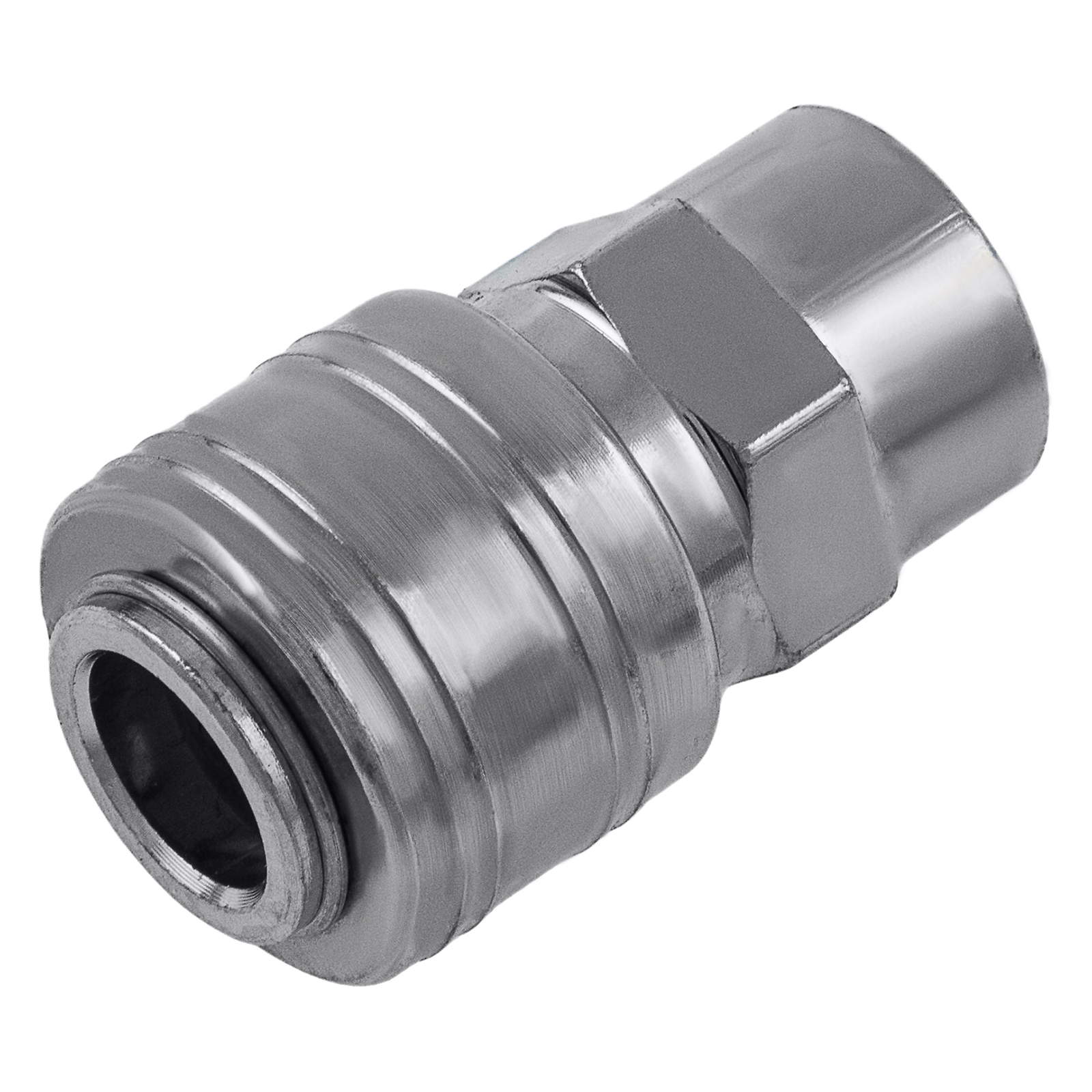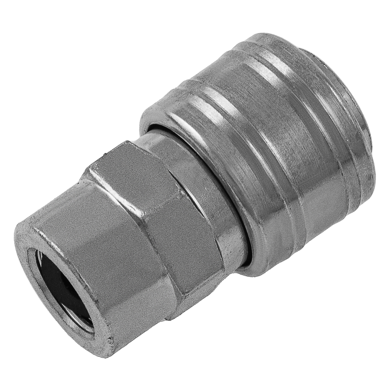 Универсальная муфта Stels 57050 типа «мама», с внутренней резьбой 1/4″ используется для быстросъемного соединения пневматического шланга с компрессором и пневмоинструментом. Подключение не занимает много времени, с ним справится даже начинающий пользователь. Муфта используется при проведении строительных и ремонтных работ.