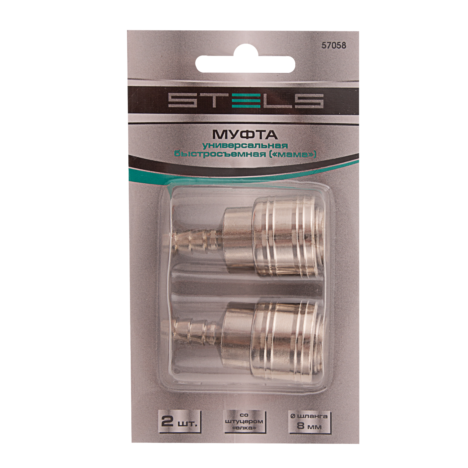 Муфта универсальная быстросъемная ("мама") 3/8, со штуцером "елка" под шланг 8 мм, 2 шт, Stels в Челябинске