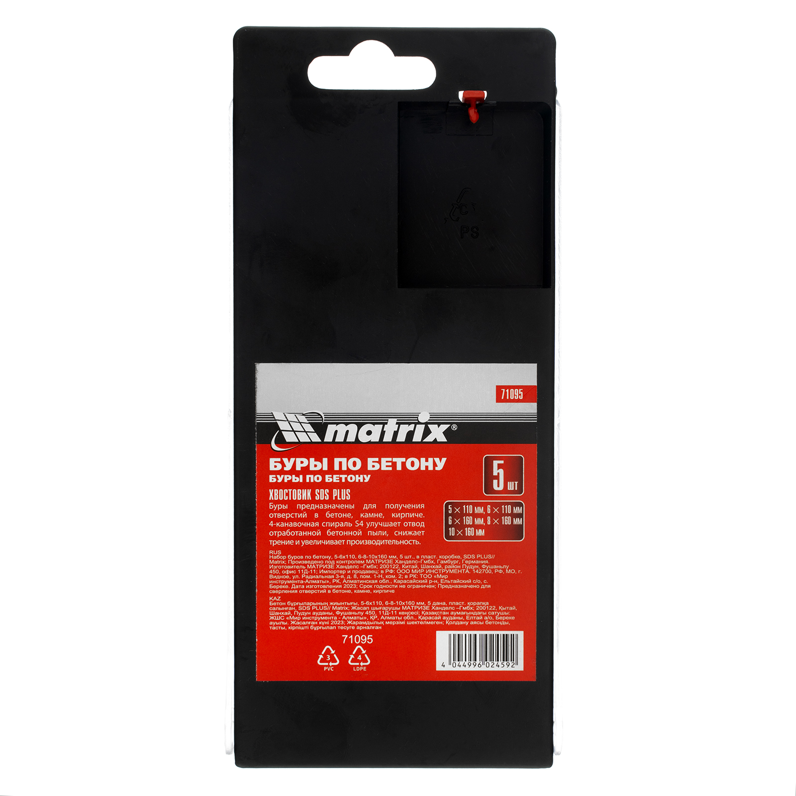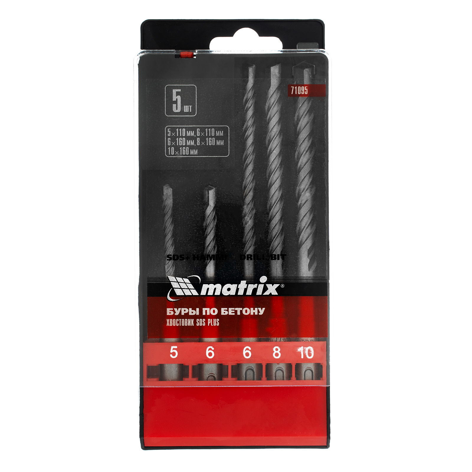 Набор Matrix 71095 состоит из 5 буров по бетону размером 5-6 х 110, 6-8-10 х 160 мм, с хвостовиком SDS PLUS, упакованных в пластиковую коробку. Пригодится как начинающим, так и профессиональным мастерам для сверления бетона, кирпича и камня. Применяется при проведении монтажных, демонтажных, ремонтных и строительных работ.