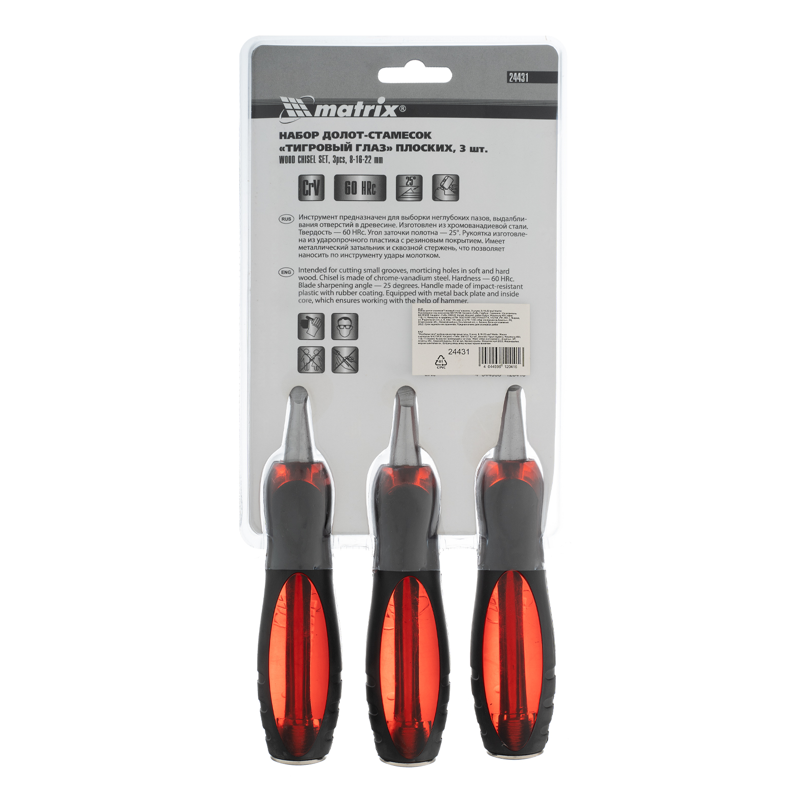 Набор долот-стамесок плоских Matrix «Тигровый глаз» 24431, 3 штуки 8-16-22 мм, используется для обработки древесины любых пород. Стамески позволяют выбирать пазы, проделывать выемки, снимать фаски, выдалбливать отверстия разной ширины. Рукоятки из ударопрочного пластика имеют металлический затыльник и выдерживают удары киянкой или молотком для легкого врезания в древесину любой твердости. Набор пригодится столярам, плотникам и мебельным мастерам.