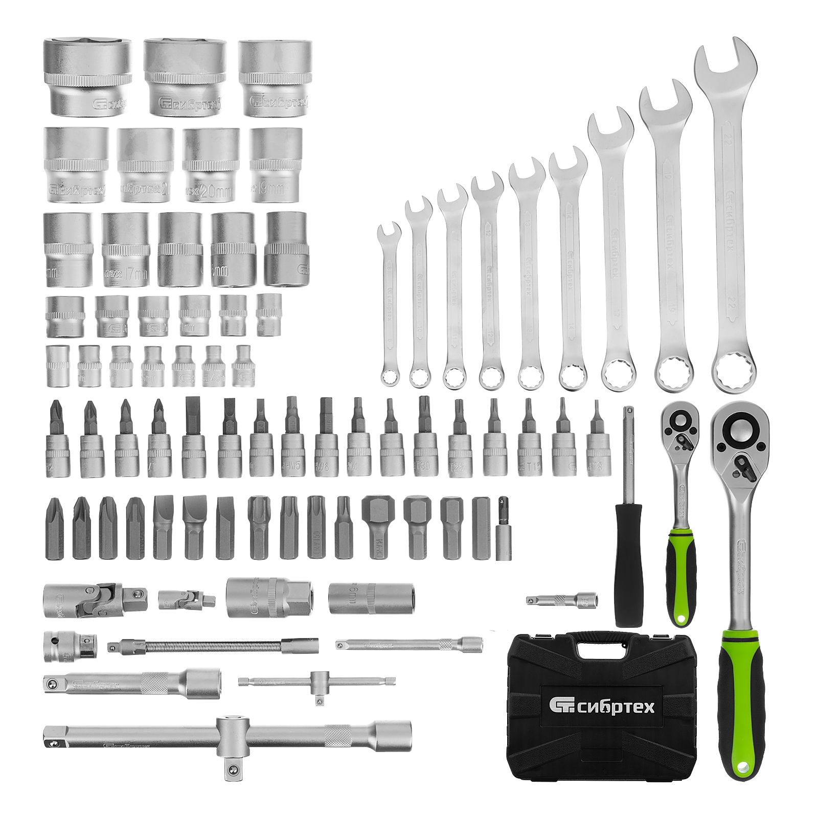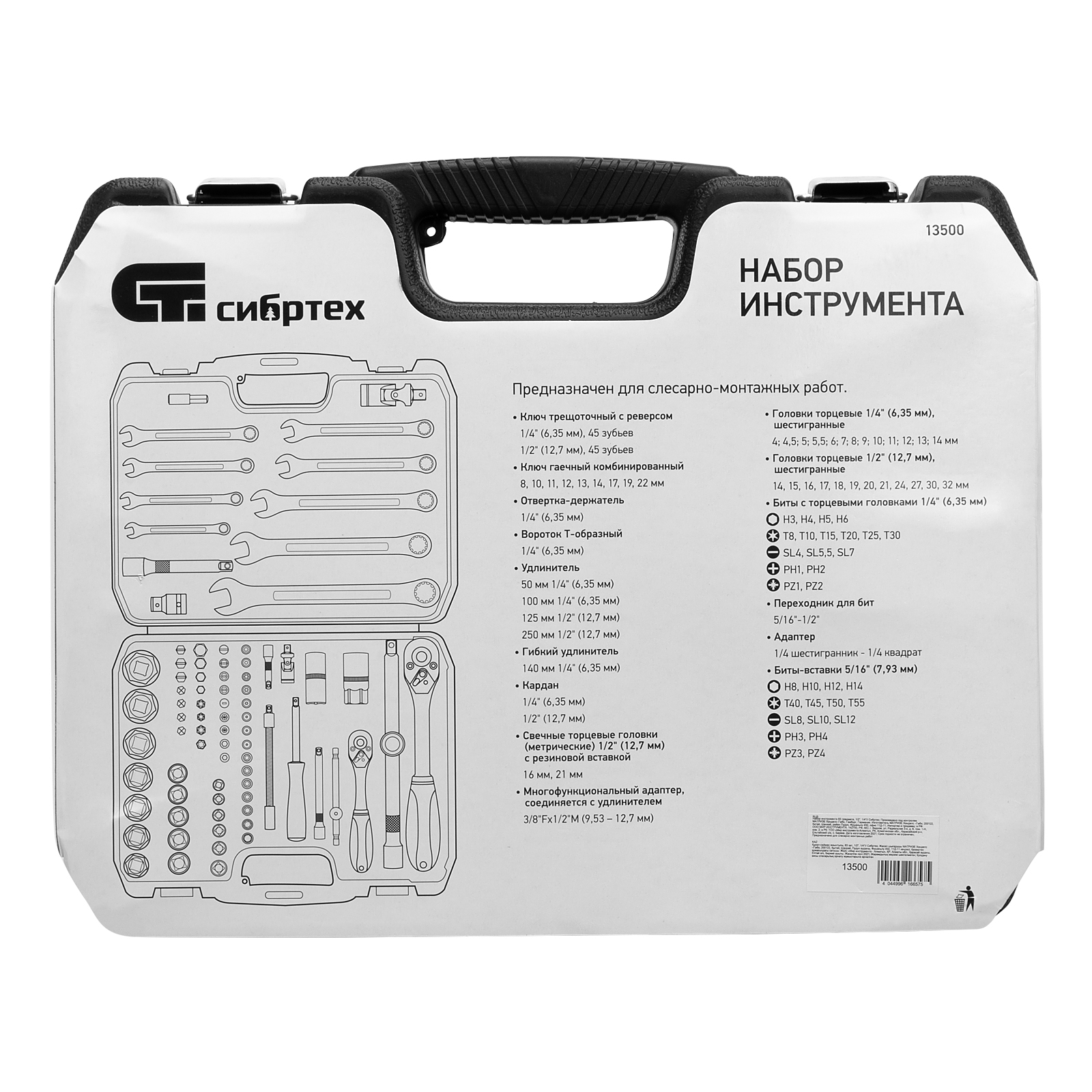 Набор инструмента, 1/2", 1/4", пластиковый кейс, 83 предмета Сибртех в Челябинске