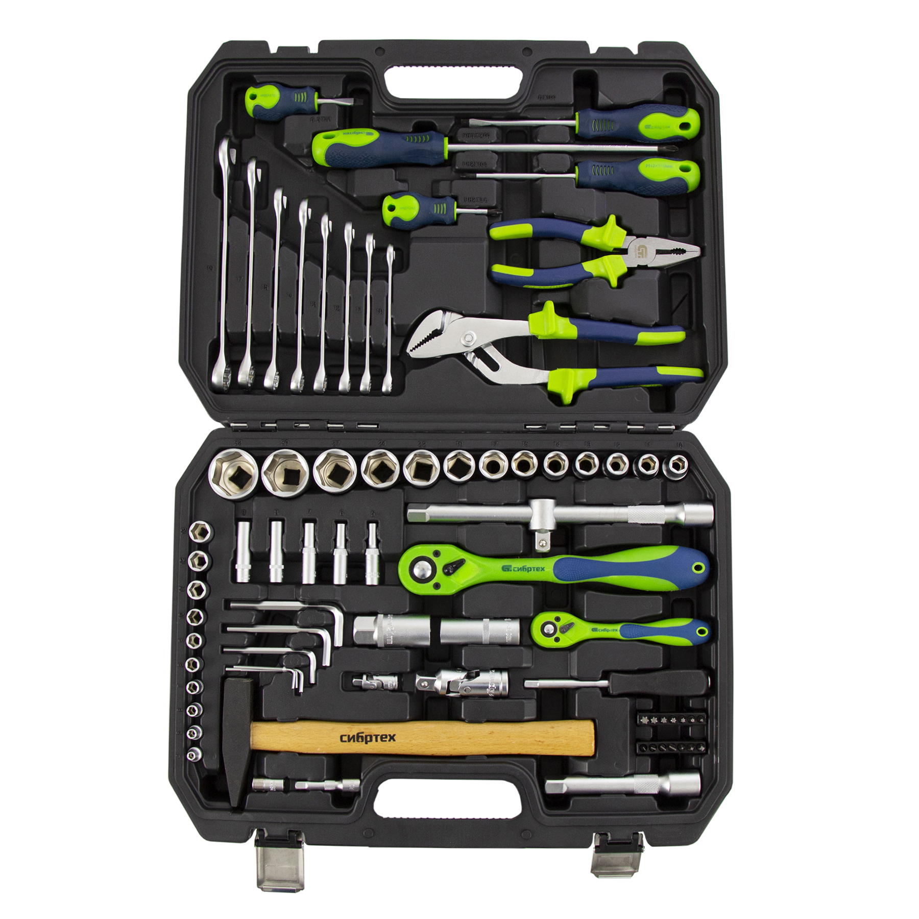 Набор инструментов 76 предметов CrV, 1/2", 1/4" Сибртех в Челябинске