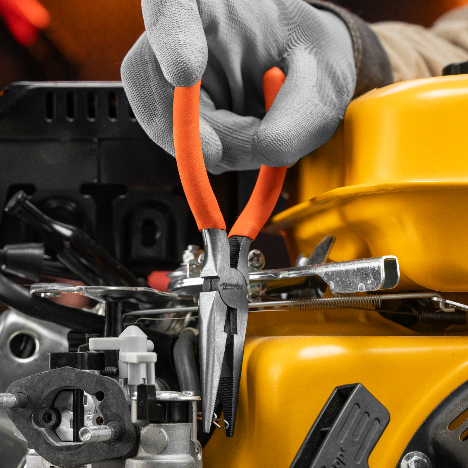 - Отвертка и длинногубцы имеют пластиковые рукоятки для удобства захвата.