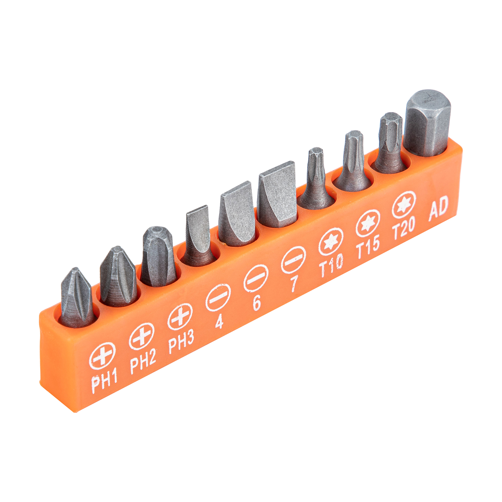 Ключ разводной - 1 штГоловки 5, 6, 8, 10 - 4 штОтвертки для точных работ SL, PH - 6 штОтвертка для бит - 1 штАдаптер для бит - 1 штБиты PH, SL, T - 9 штКлючи шестигранные Н - 5 штДержатель для бит с магнитом - 1 штКейс - 1 штГоловки - 1 штПассатижи - 1 штРазводной ключ - 1 шт |