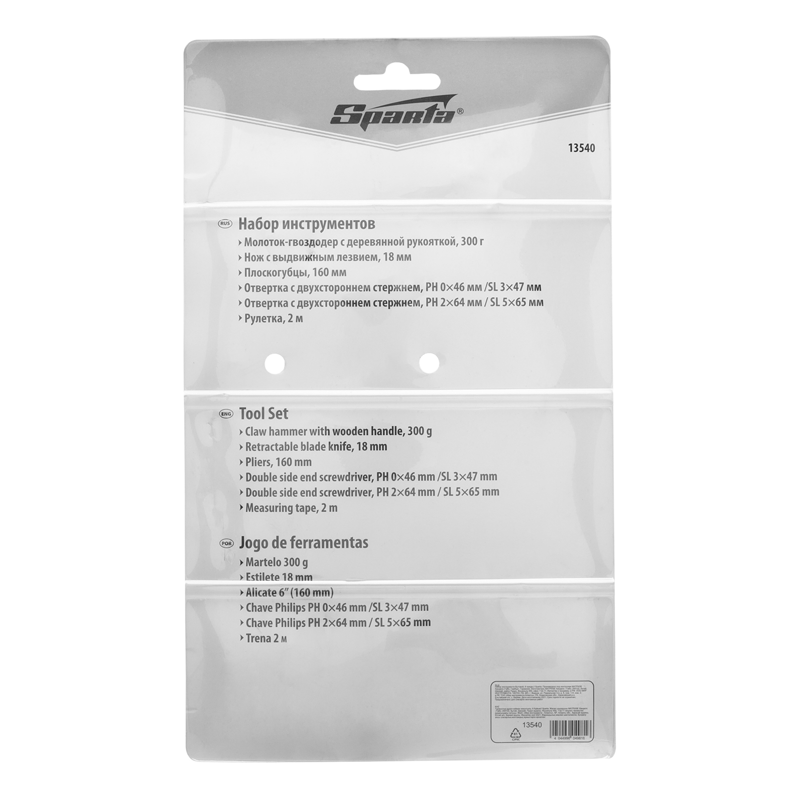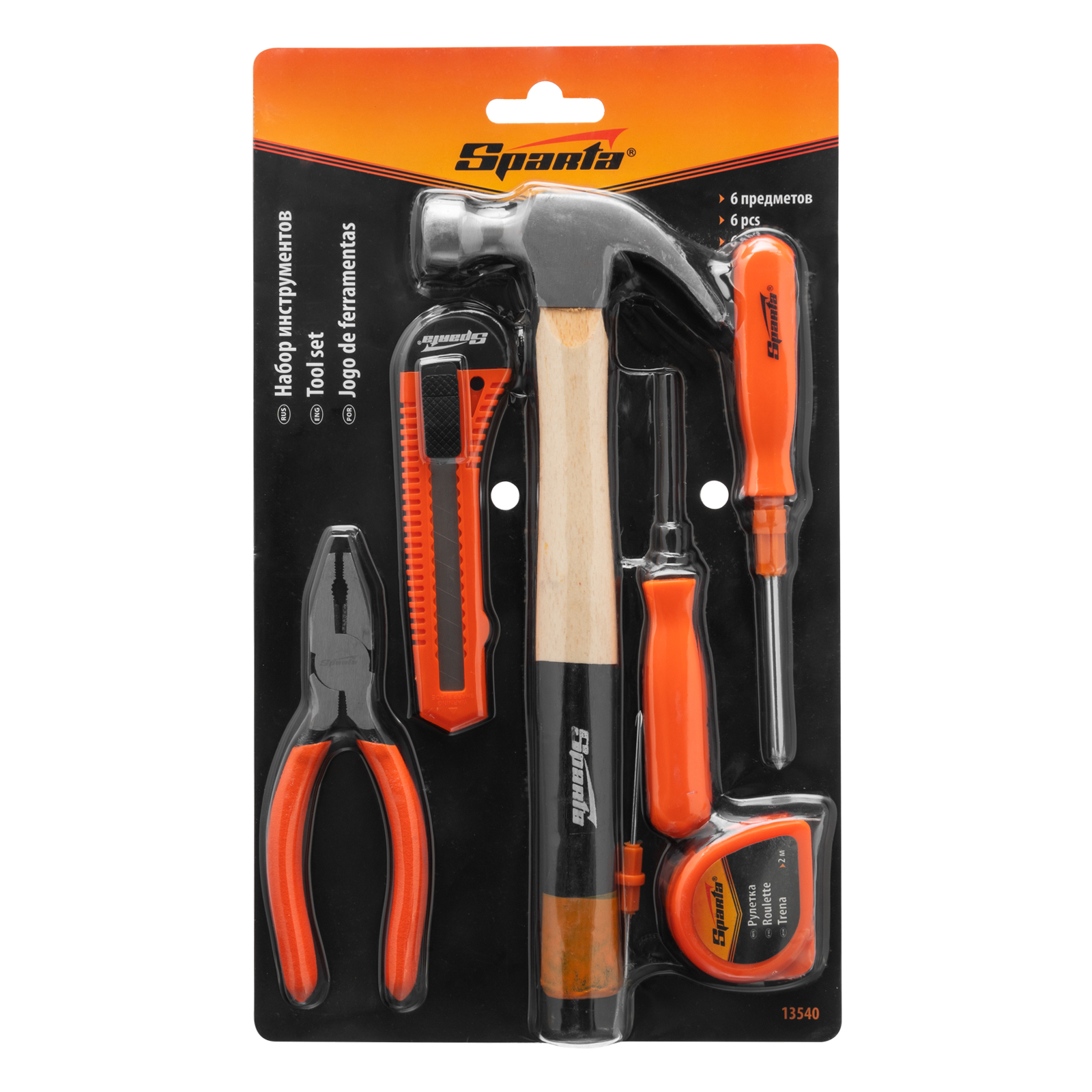 Набор инструмента Sparta 13540 состоит из 6 предметов, которые пригодятся в хозяйстве. Он включает все необходимое для проведения несложных монтажных и ремонтных работ, поэтому будет полезен даже начинающим мастерам. Входящий в комплект нож с выдвижным сегментированным лезвием шириной 18 мм позволяет резать бумагу, картон, раскраивать обои и линолеум.