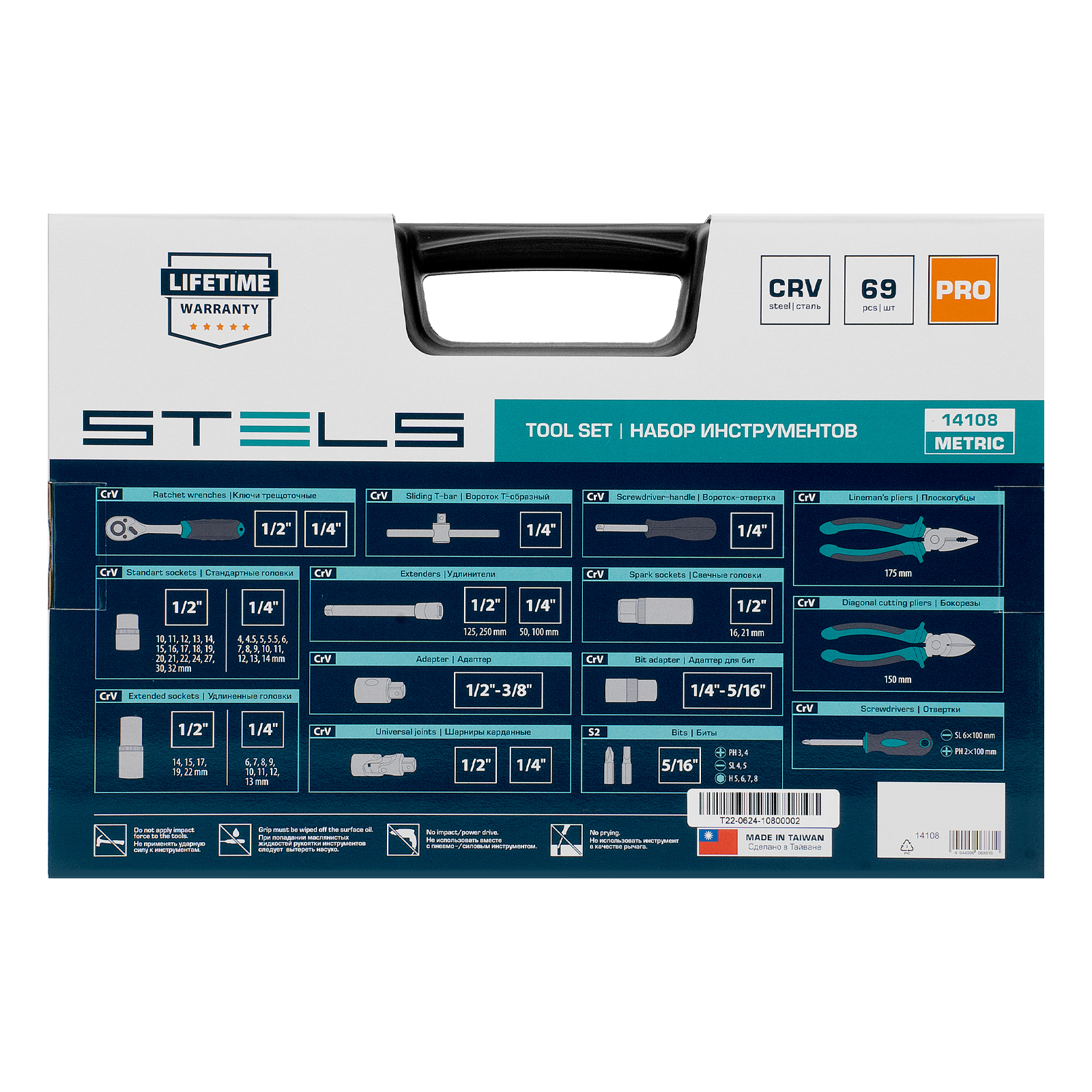 Набор инструментов, 1/2", 1/4", CrV, пластиковый кейс 69 предметов Stels в Челябинске