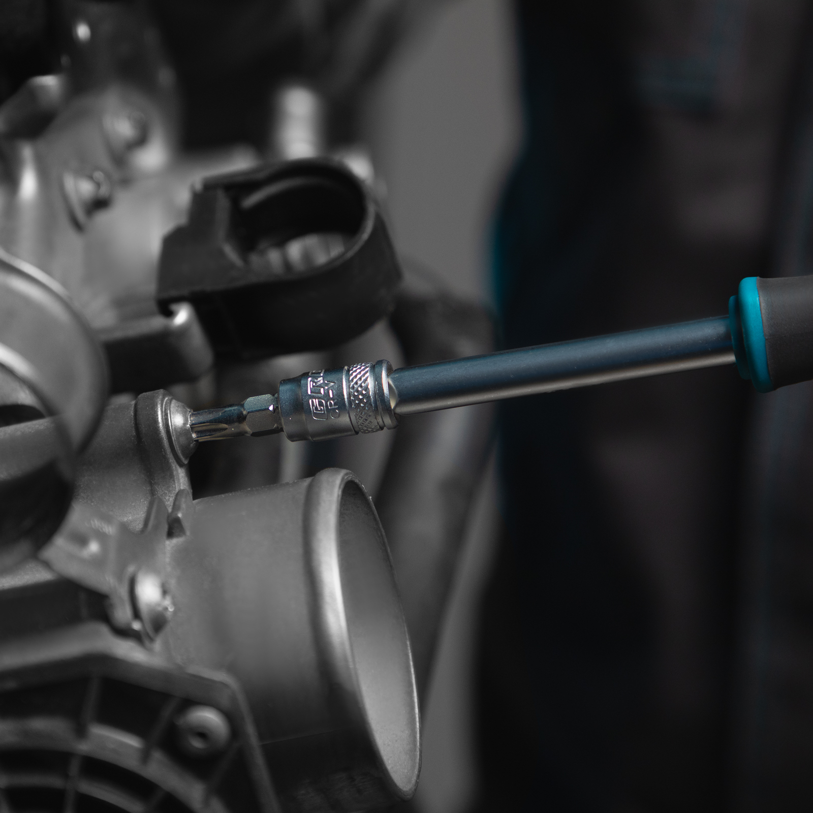 - Надежный захват — насечки на битах, торцевых головках и удлинителях препятствуют их проскальзыванию даже в замасленных руках.