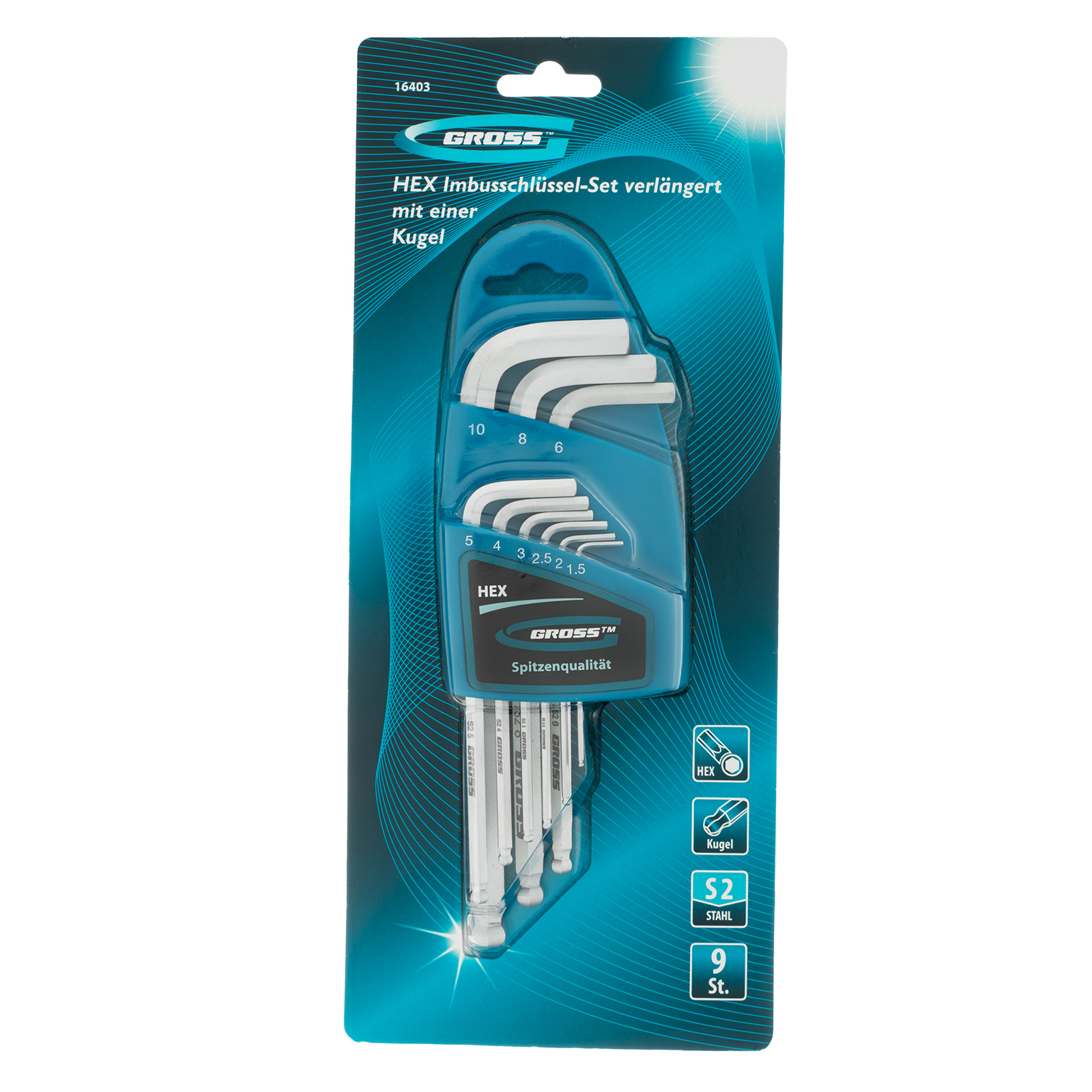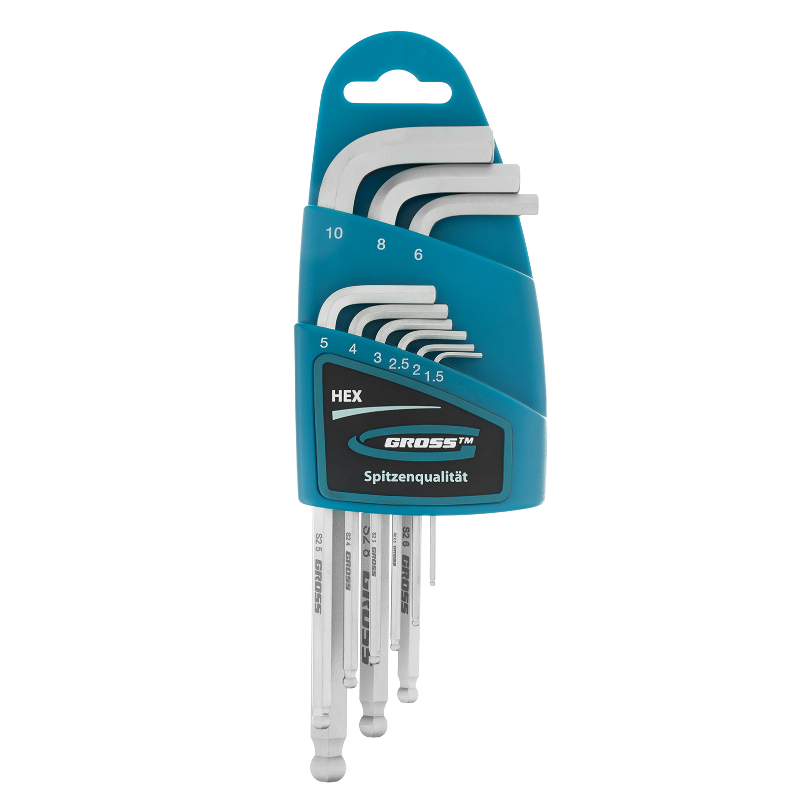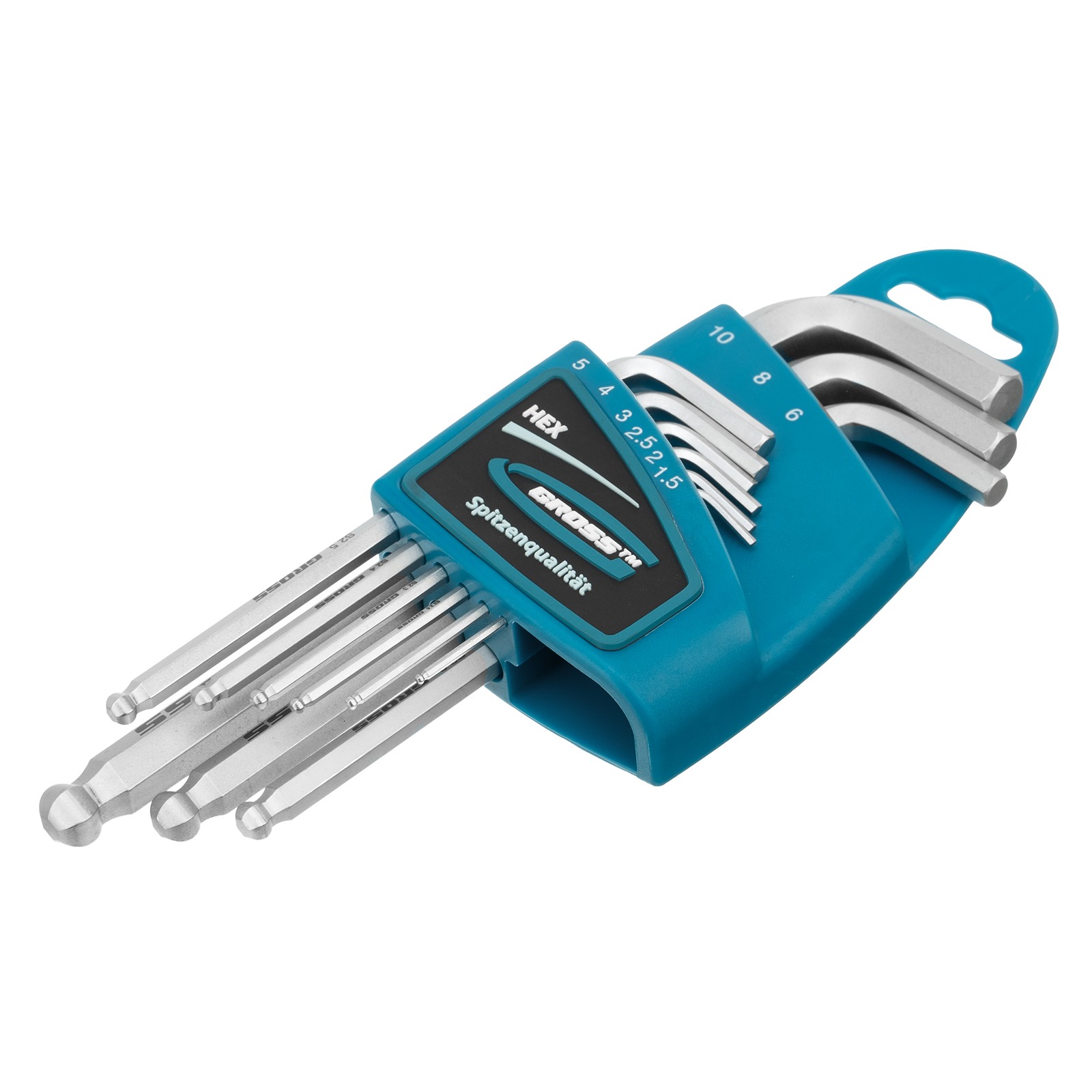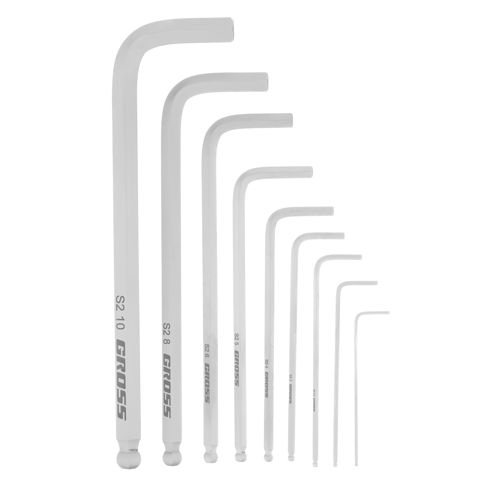 Набор ключей имбусовых HEX, 1.5-10 мм, S2, 9 шт, удлиненные с шаром, сатинированные Gross в Челябинске