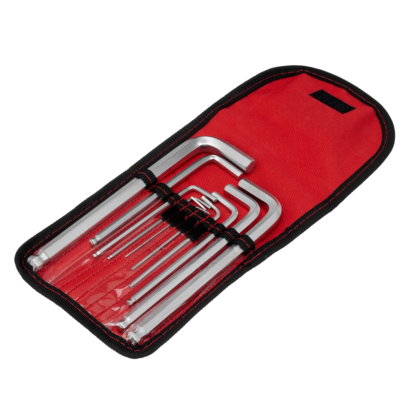 Нейлоновый чехол - 1 штКлючи имбусовые: 1.5 мм, 2 мм, 2.5 мм, 3 мм, 4 мм, 5 мм, 6 мм, 8 мм, 10 мм, 12 мм - 9 шт |
