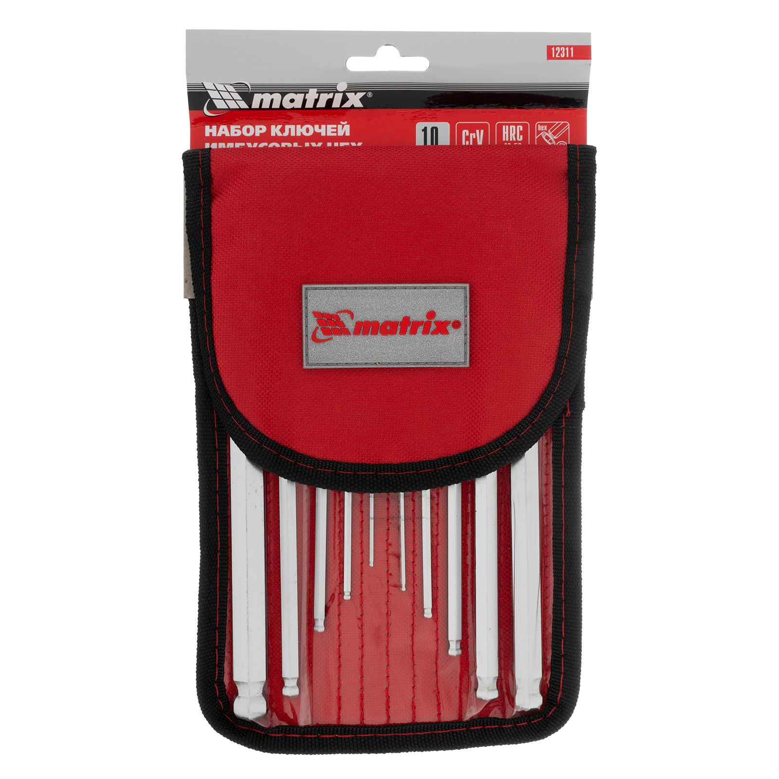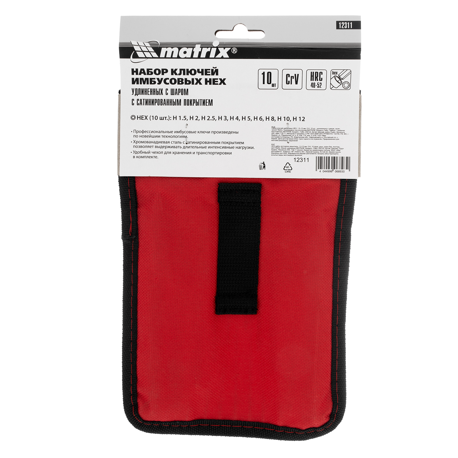 Набор ключей имбусовых HEX, 1.5-12 мм, CrV, 10 шт, удлиненных, шарообразный наконечник, с сатинированным покрытием, чехол Matrix в Челябинске