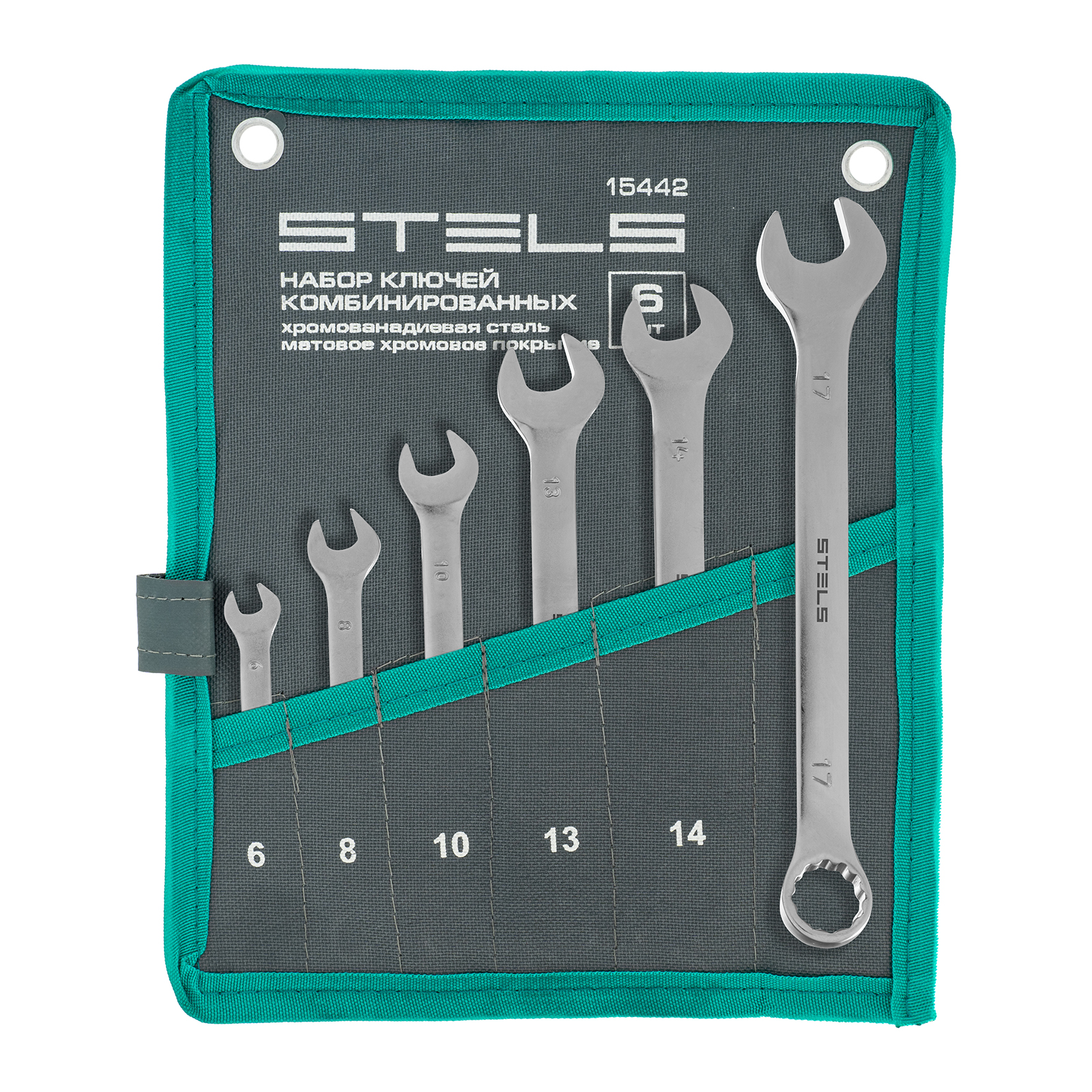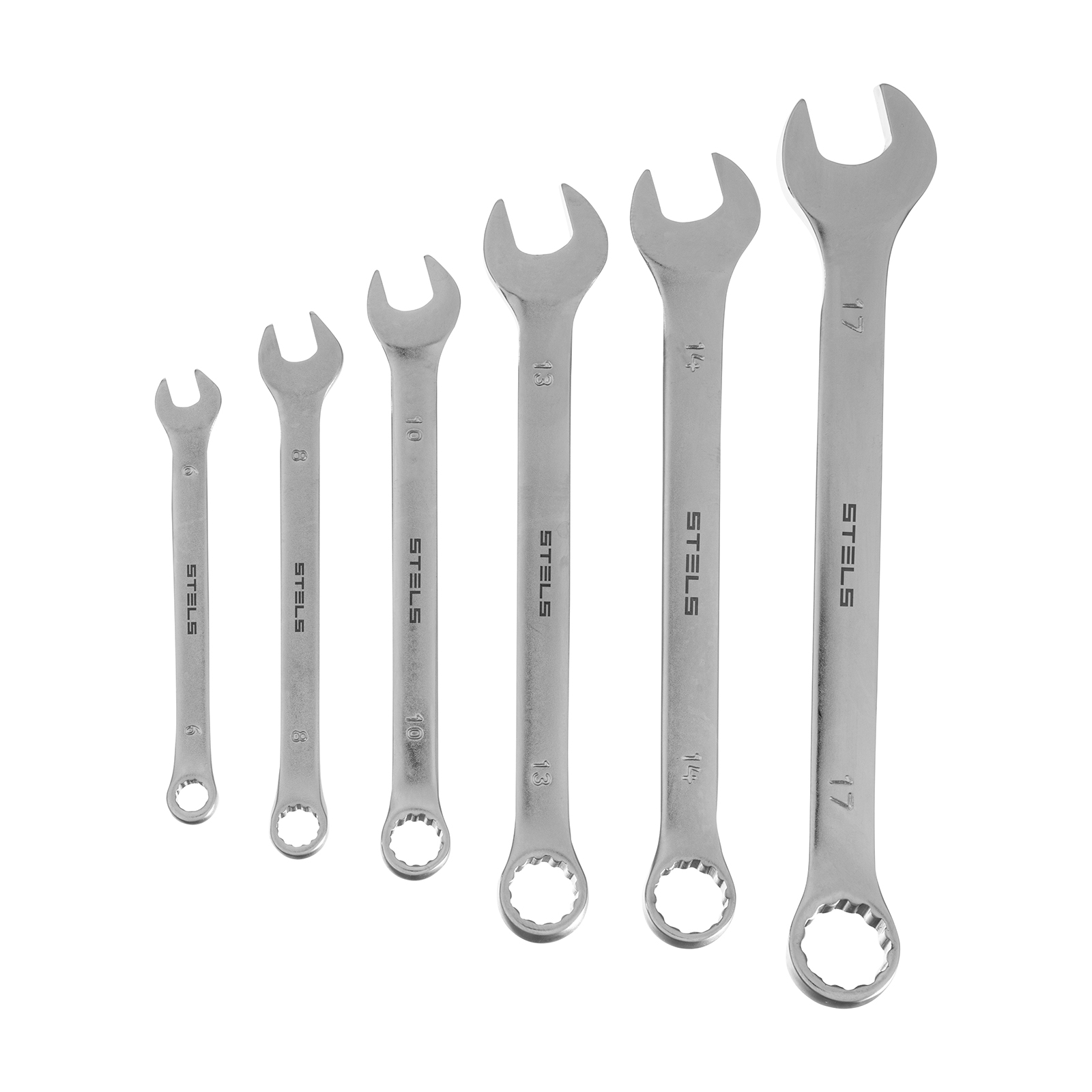 Набор ключей комбинированных 6-17 мм, 6 шт., CrV, матовый хром Stels в Челябинске