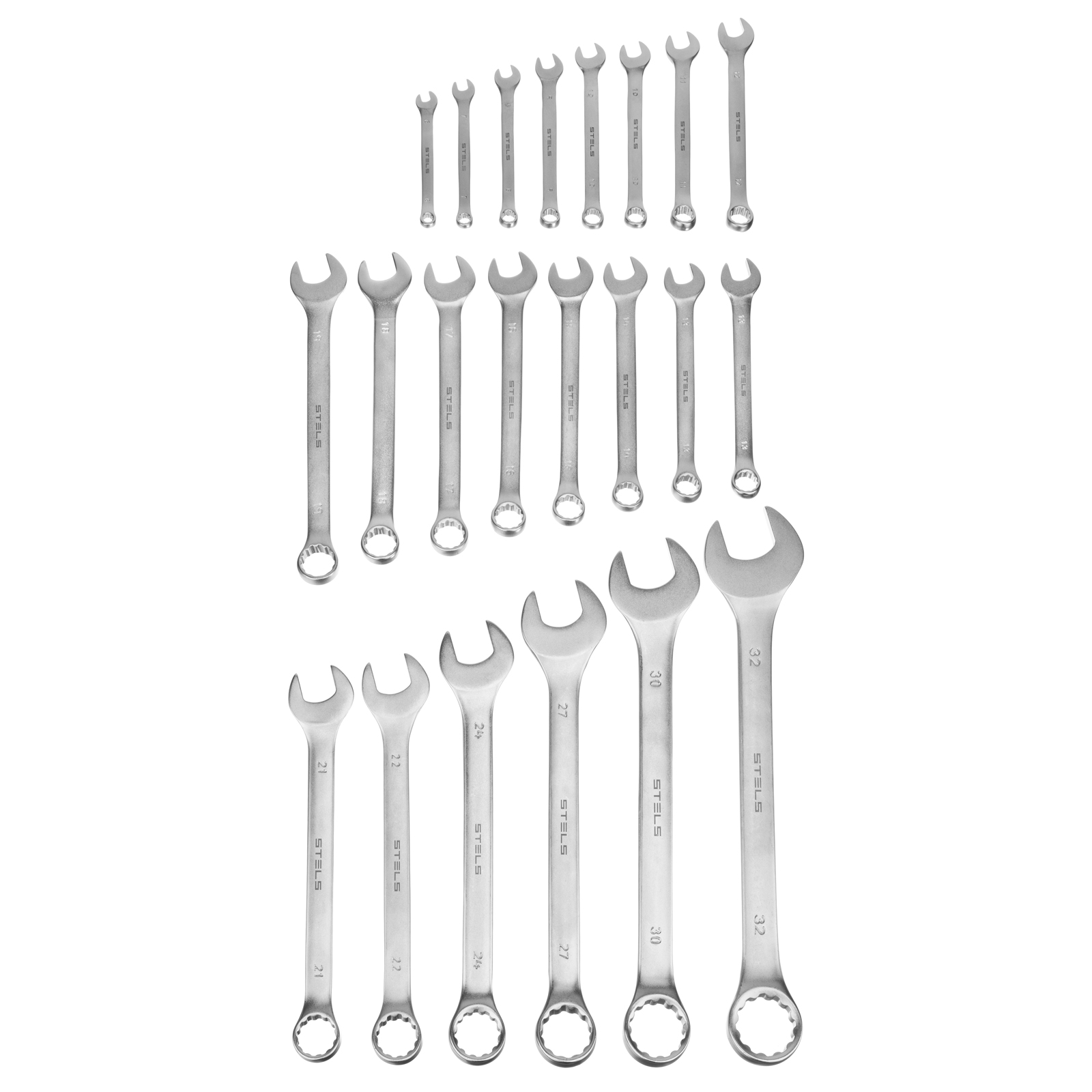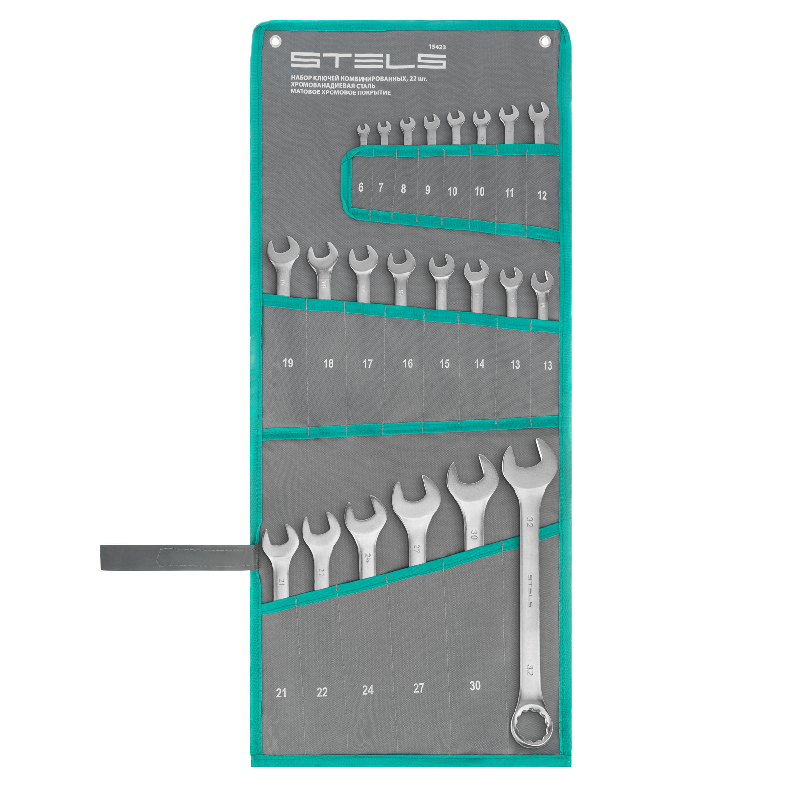 Набор ключей комбинированных 6-32 мм, 22 шт, CrV, матовый хром Stels в Челябинске