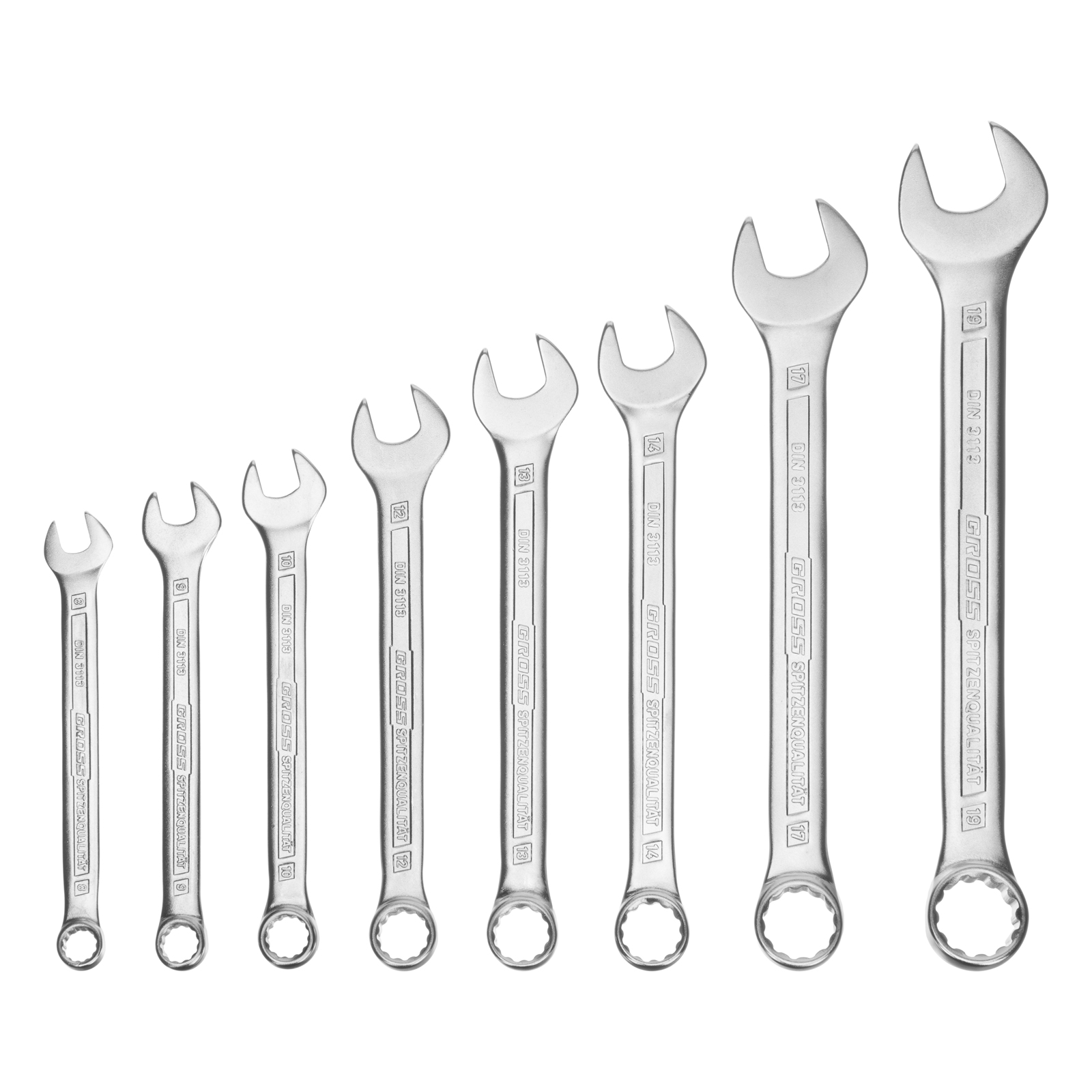 Набор ключей комбинированных 8-19 мм, 8 шт, CrV, холодный штамп Gross в Челябинске
