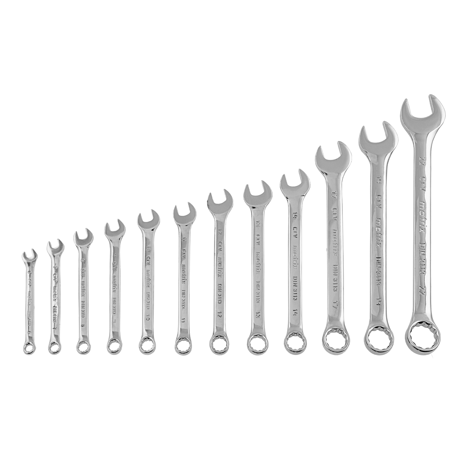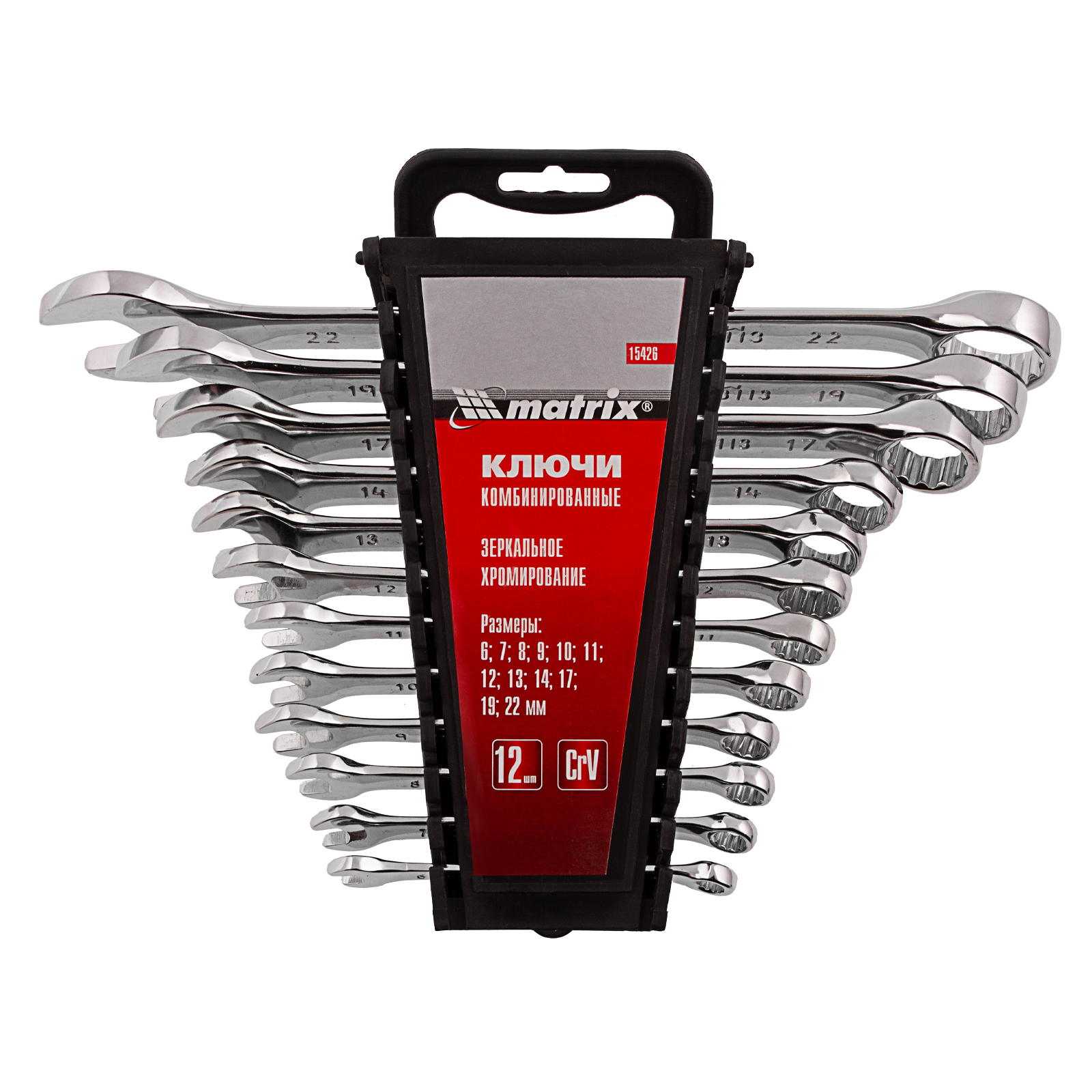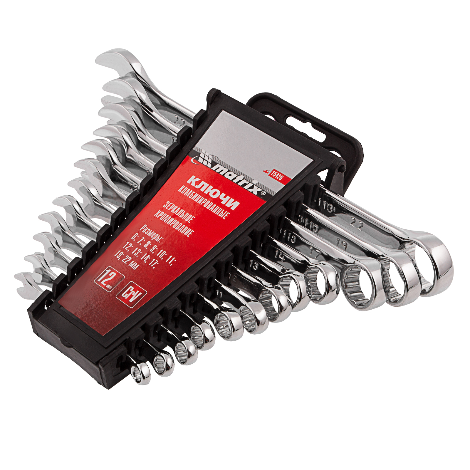Набор ключей комбинированных, 6-22 мм, 12 шт, CrV, полированный хром Matrix в Челябинске
