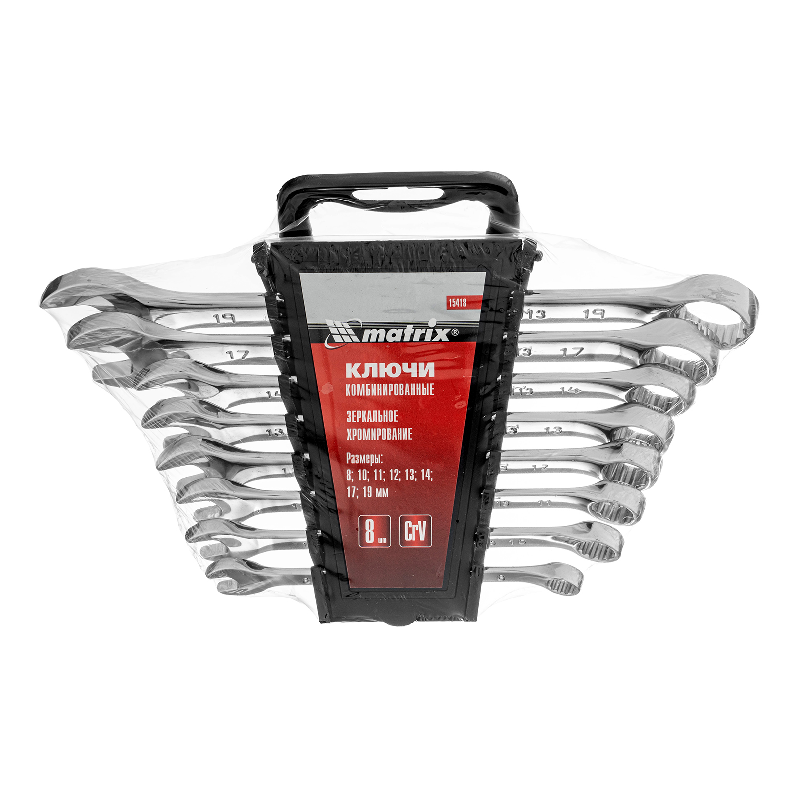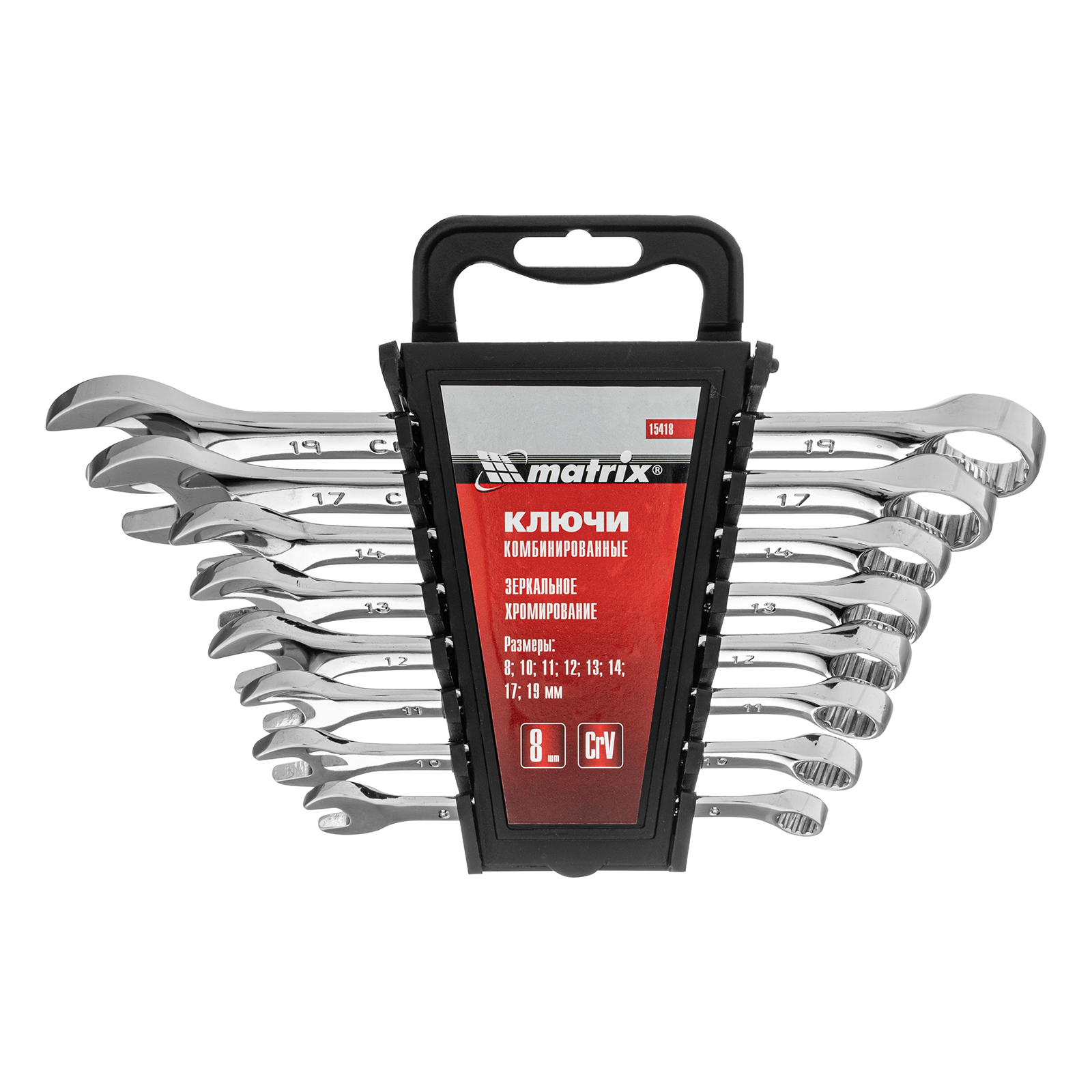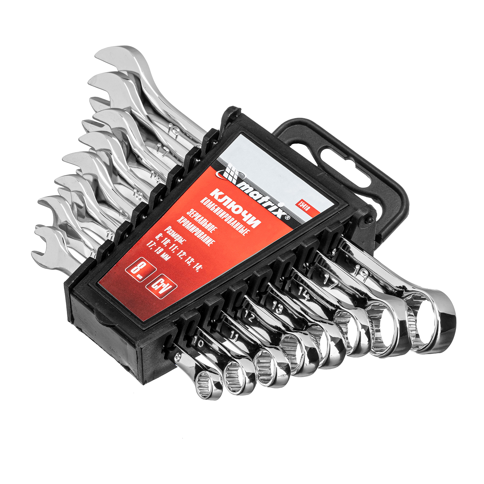 Набор ключей комбинированных, 8-19 мм, 8 шт, CrV, полированный хром Matrix в Челябинске