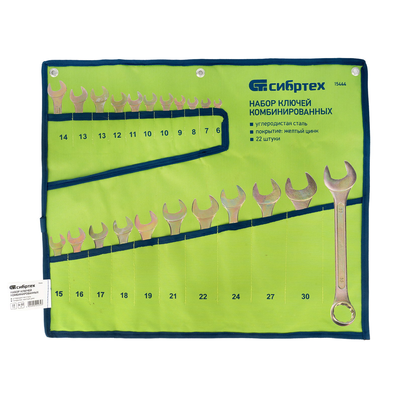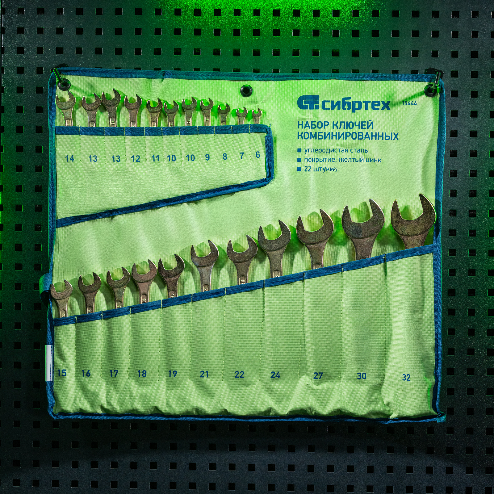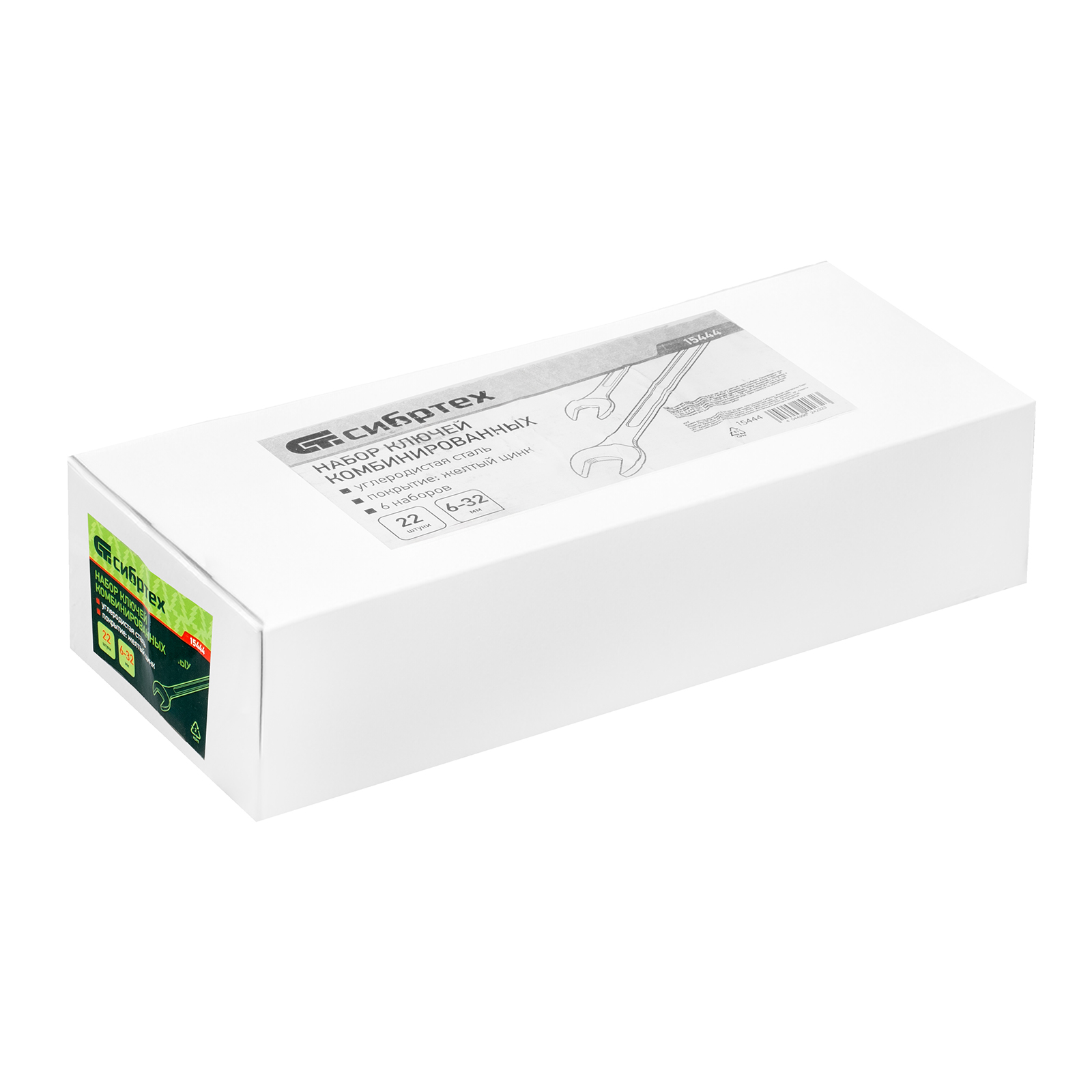 Набор ключей комбинированный 6-32 мм, 22 шт, желтый цинк Сибртех в Челябинске