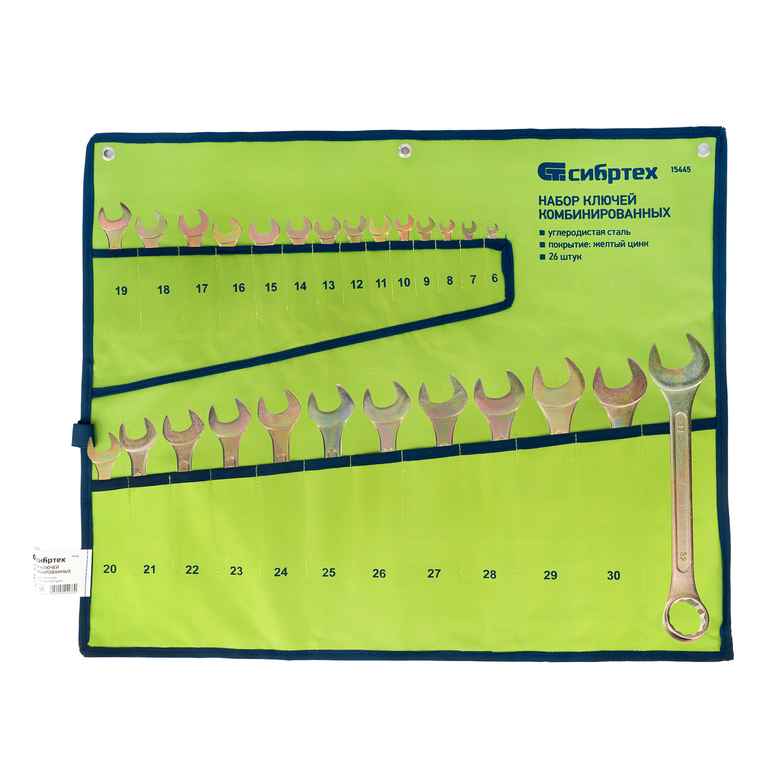Набор ключей комбинированный 6-32 мм, 26 шт, желтый цинк Сибртех в Челябинске