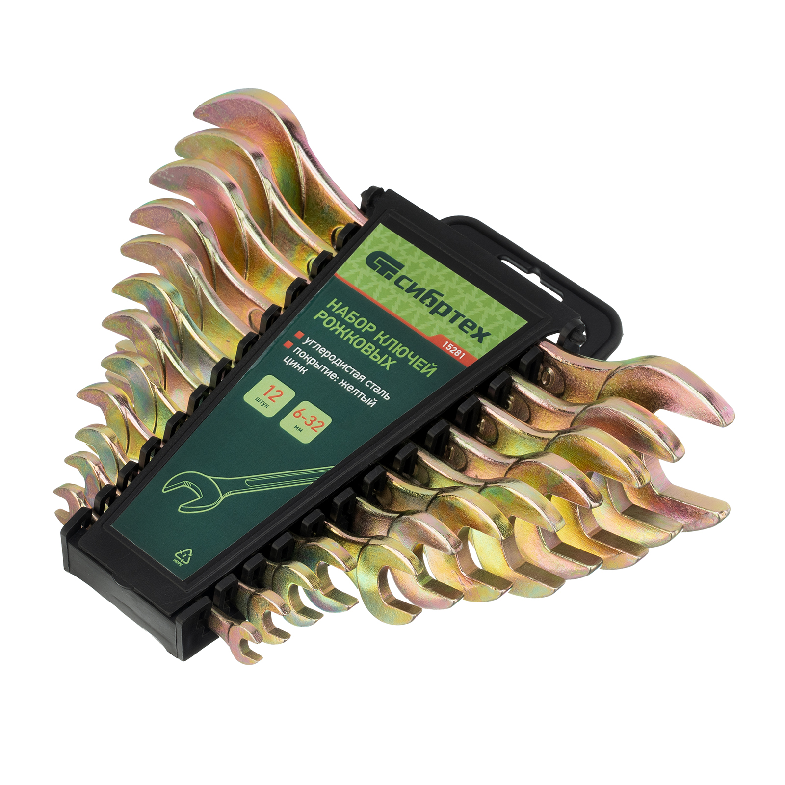 Набор ключей рожковых 6-32 мм, 12 шт, желтый цинк Сибртех в Челябинске