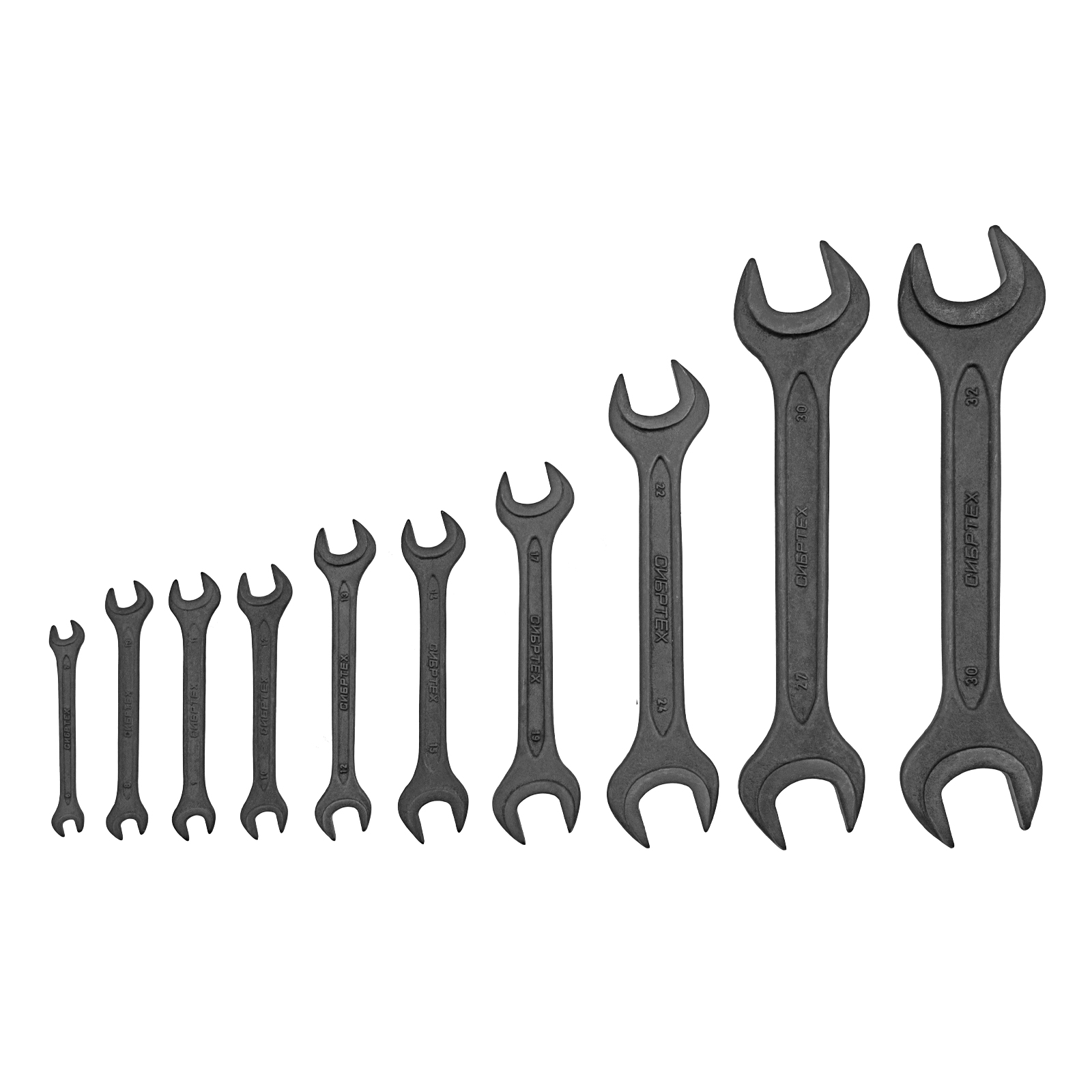 Набор ключей рожковых, 6 - 32 мм, 10 шт., CrV, фосфатированные Сибртех в Челябинске