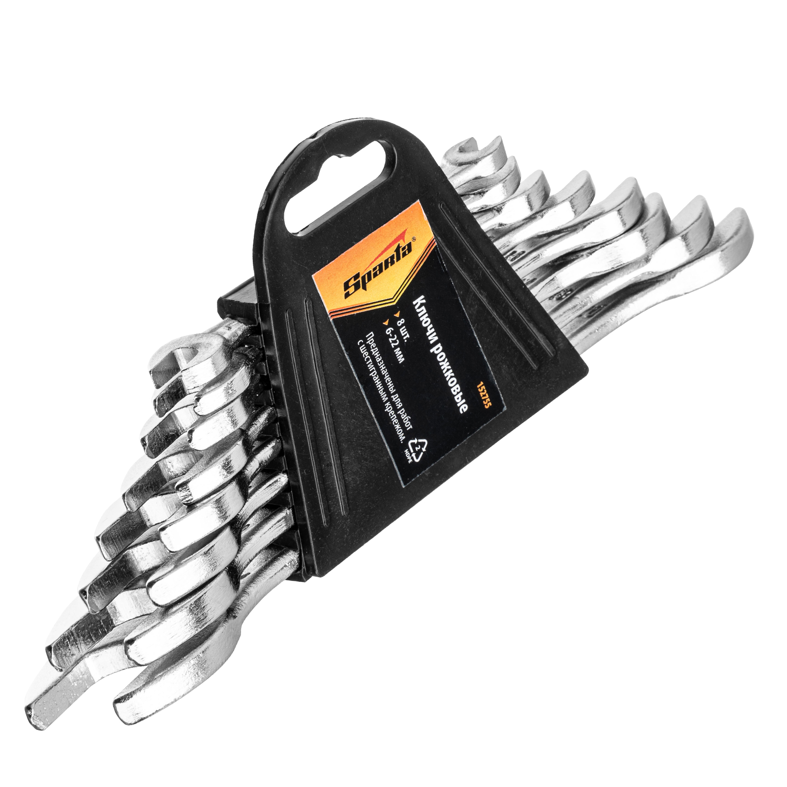 Набор из 8 хромированных рожковых ключей Sparta 152755 предназначен для откручивания и закручивания болтов, гаек и других крепежей с шестигранным профилем размером от 6 до 22 мм. У каждого ключа имеются рабочие губки с различным размером зева. Они расположены под углом к рукоятке, что облегчает работу в стесненных условиях. Инструменты используются для сборки и разборки оборудования, при проведении монтажных работ, будут полезны дома, на даче или в гараже.