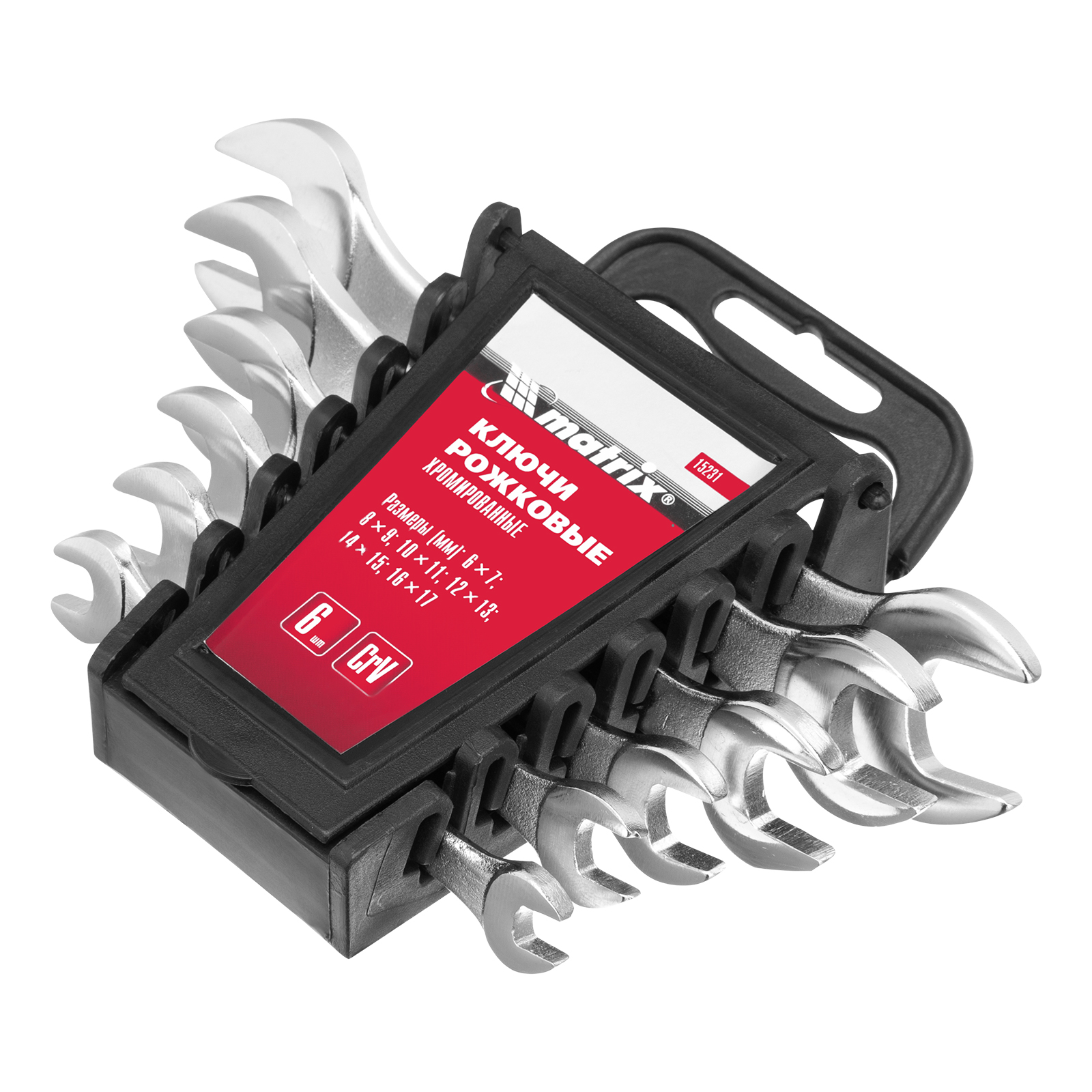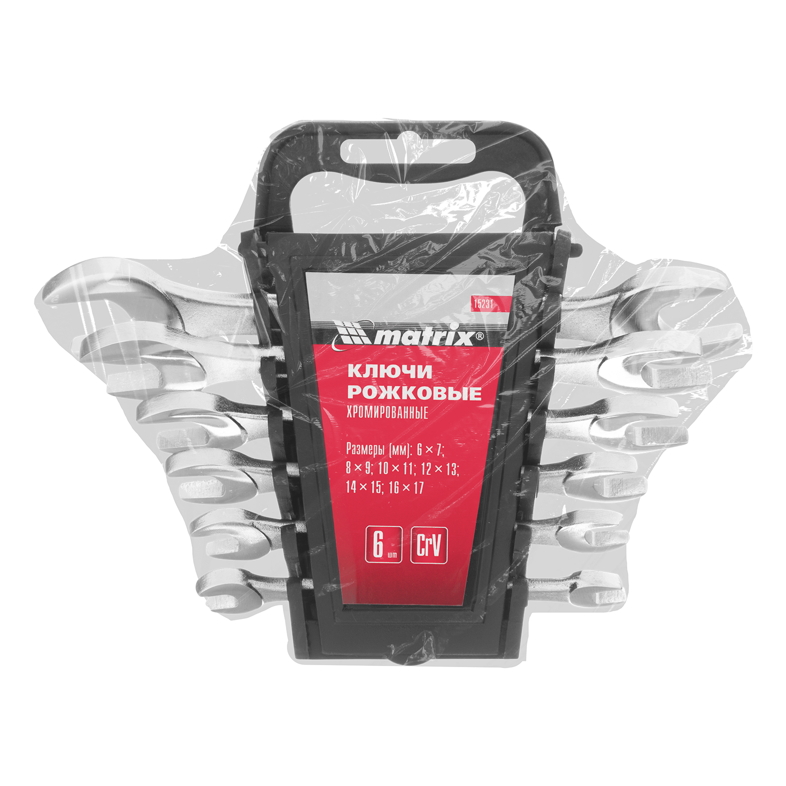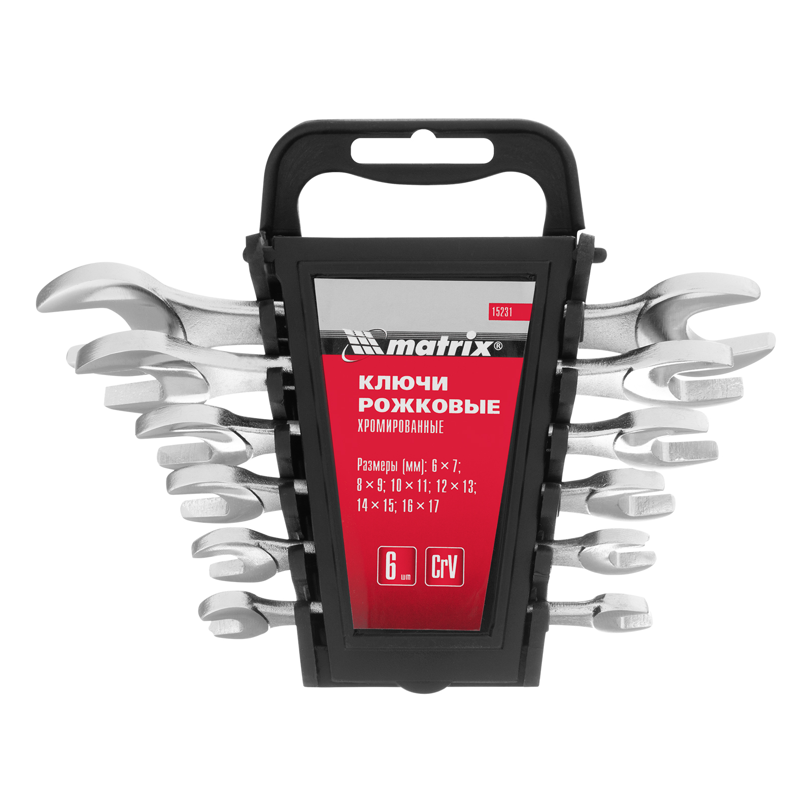 Набор ключей рожковых, 6-17 мм, 6 шт, CrV, хромированные Matrix в Челябинске