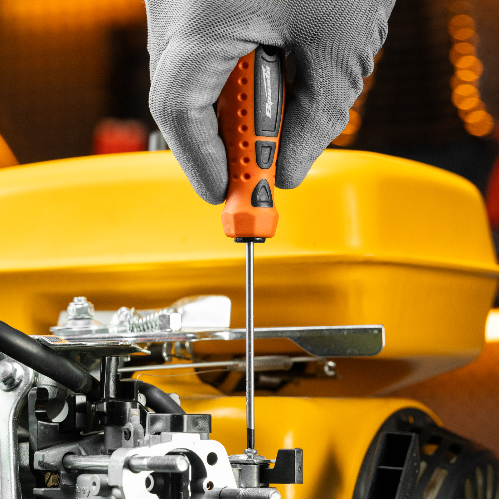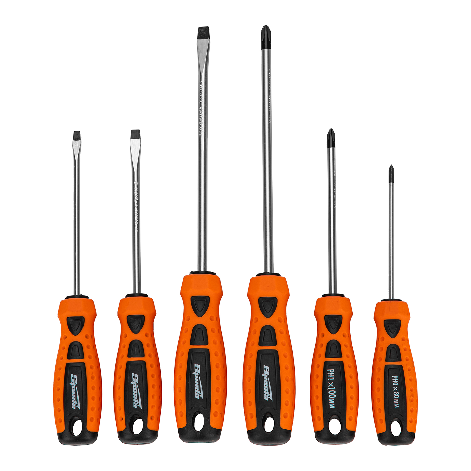 Набор отверток Sparta «Point» 11782 с двухкомпонентными рукоятками, CrV, состоит из 6 инструментов наиболее распространенных типоразмеров. Применяется для закручивания и откручивания крепежных элементов с профилем SL и PH. Набор рассчитан на бытовое использование, осуществление несложных монтажных и ремонтных работ. Отвертками можно работать в труднодоступных местах, т.к. комплект включает инструменты как с коротким — 75 мм, так и с длинным стержнем 150 мм.