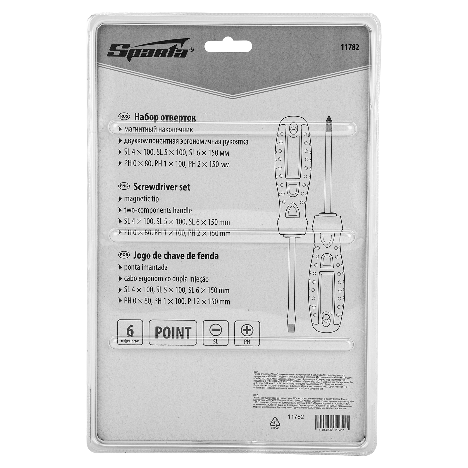 Набор отверток "Point", CrV, двухкомпонентные рукоятки, 6 шт, Sparta в Челябинске
