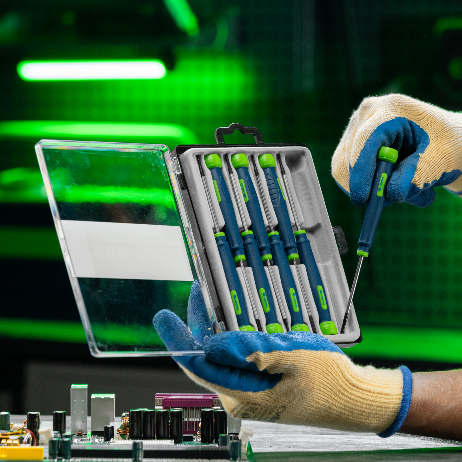 Отвертки для точных работ: T4, T5, T6, PH000, PH00, PH0, SL2, SL3 - 8 штПластиковый кейс - 1 шт |