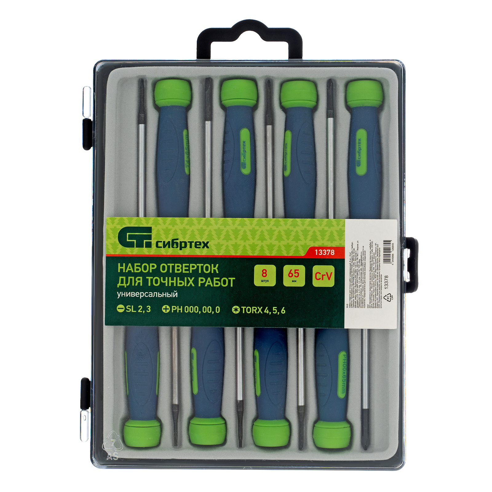 Универсальный набор отверток Сибртех 13378 включает 8 инструментов из стали CrV и рассчитан на полупрофессиональное использование при проведении точных работ. Отвертками можно закручивать и откручивать микровинты типа SL, PH и TORX, поэтому они пригодятся для ремонта мелкой бытовой техники, электроники, детских игрушек и других устройств.