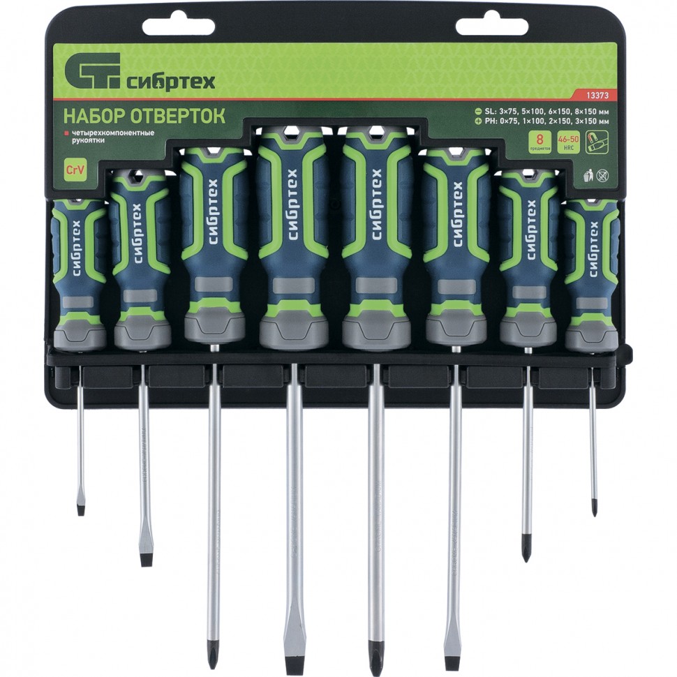 Набор отверток, CrV, четырехкомпонентные рукоятки, 8 предметов Сибртех в Челябинске