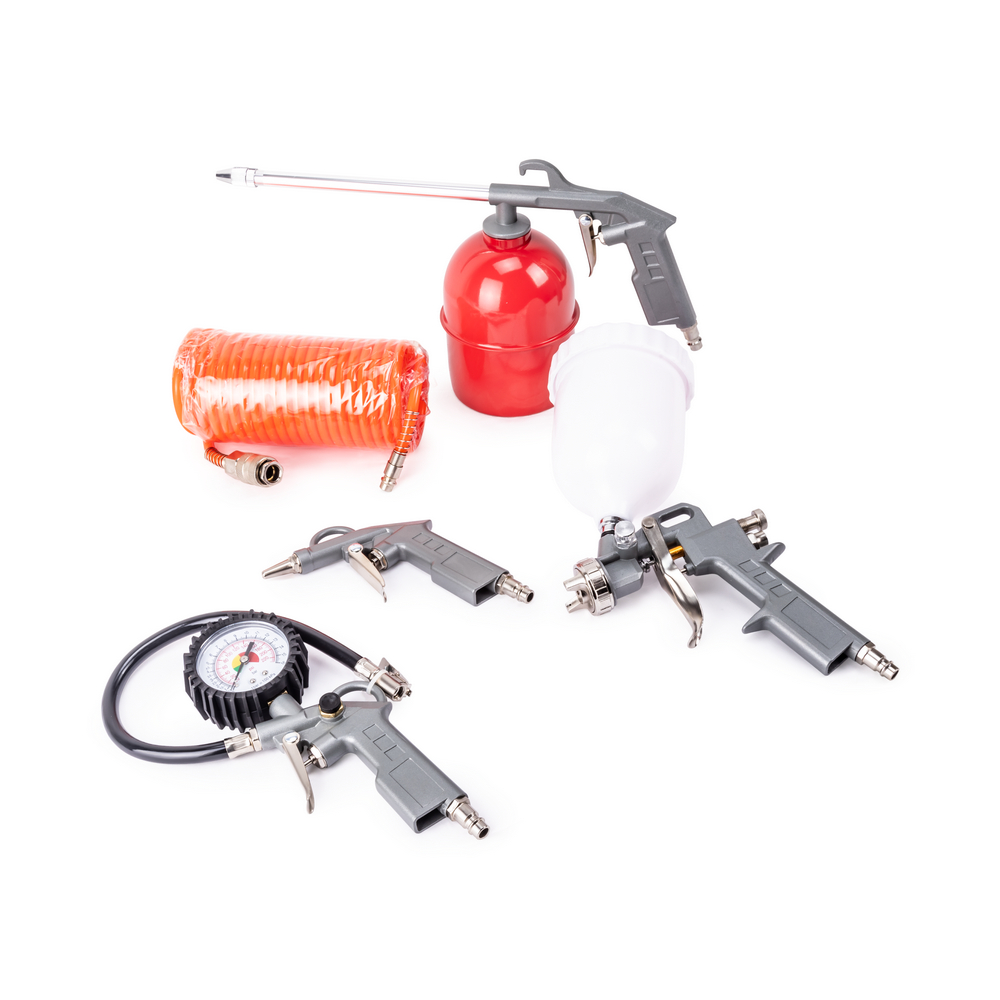 Автолюбителям данный комплект также пригодится в гараже для выполнения различных операций, таких как: покрасочные работы, нанесение антикоррозионного покрытия, промывка и продувка деталей от грязи и пыли, подкачка шин и т.п.