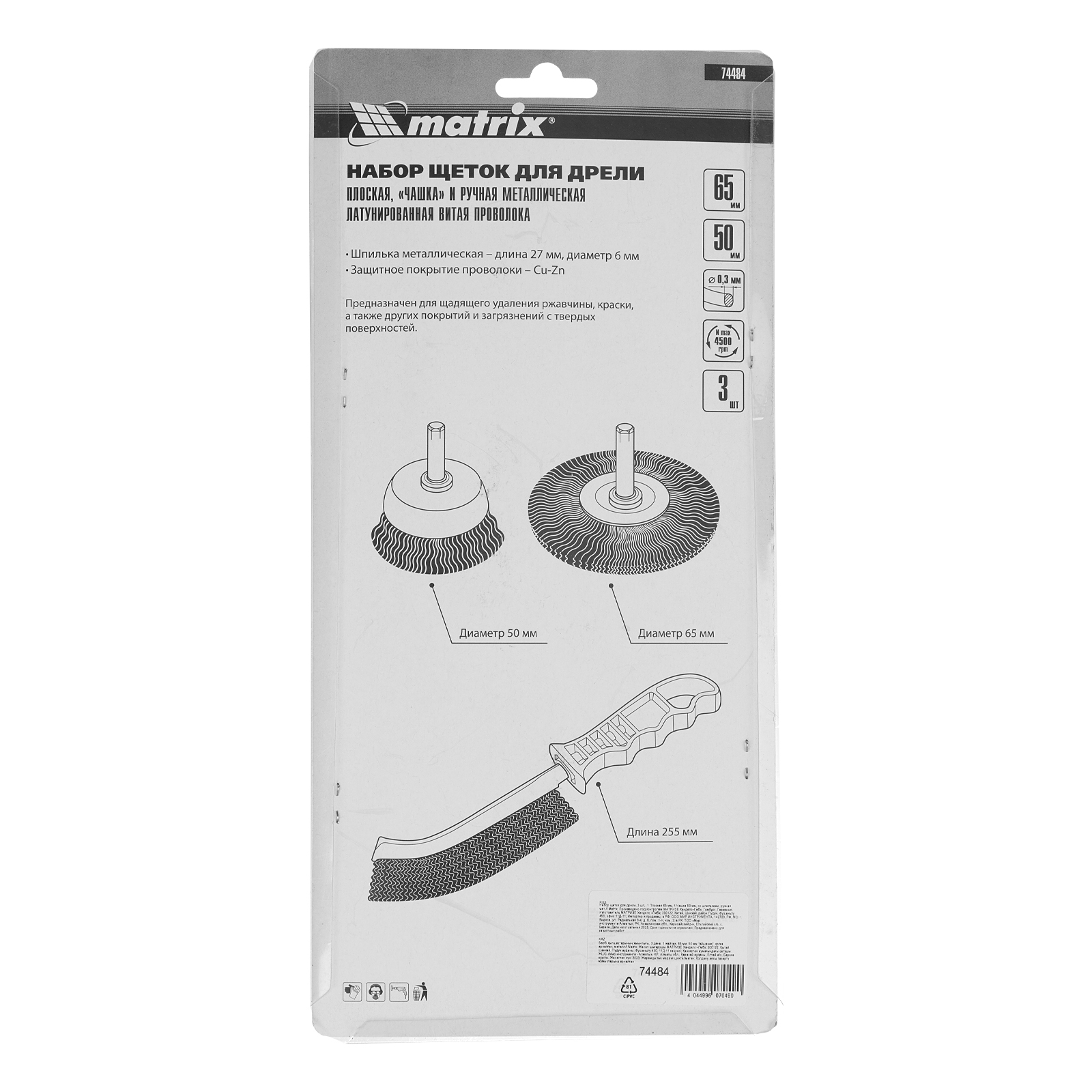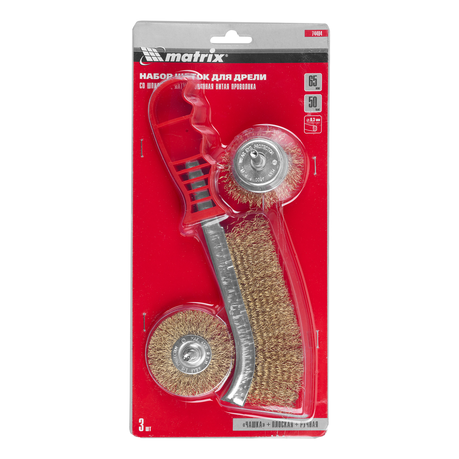 Набор щеток для дрели, 3 шт, 1 плоская, 65 мм, 50 мм "чашка", ручная металлическая Matrix в Челябинске