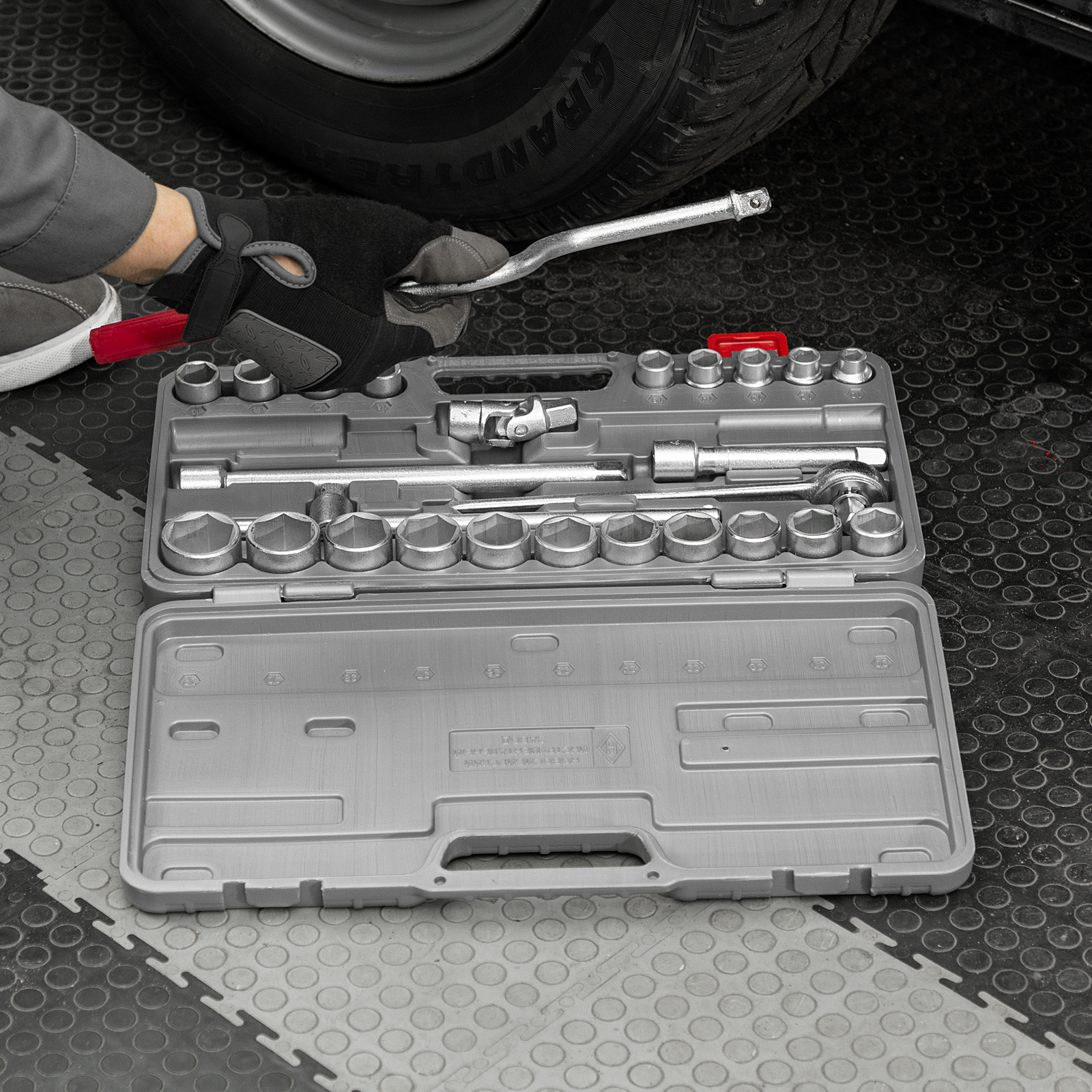 Головки 10, 11, 12, 13, 14, 15, 16, 17, 18, 19, 20, 21, 22, 23, 24, 25, 26, 27, 28, 30, 32 - 21 штКлюч трещотка - 1 штВороток Т-образный - 1 штУдлинители 125, 250 - 2 штШарнир - 1 штКоловорот - 1 штКейс - 1 штТрещотка - 1 шт |