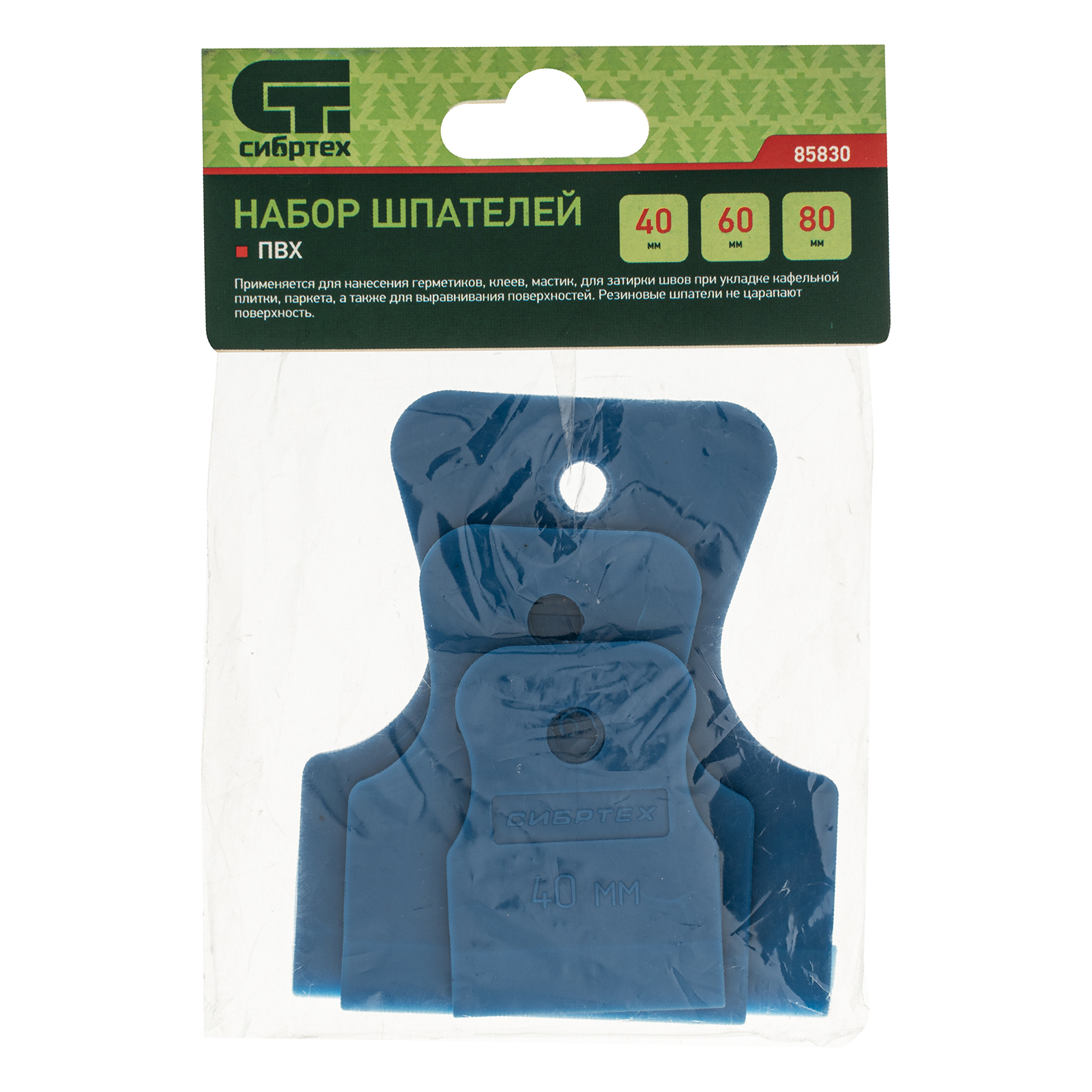 Набор Сибртех 85830 включает в себя 3 шпателя размером 40-60-80 мм. Используется для создания финишных покрытий, затирки плиточных швов и работы с герметиками. Рабочие поверхности из синей резины не оставляют следов и царапин, обеспечивают ровное нанесение материалов.
