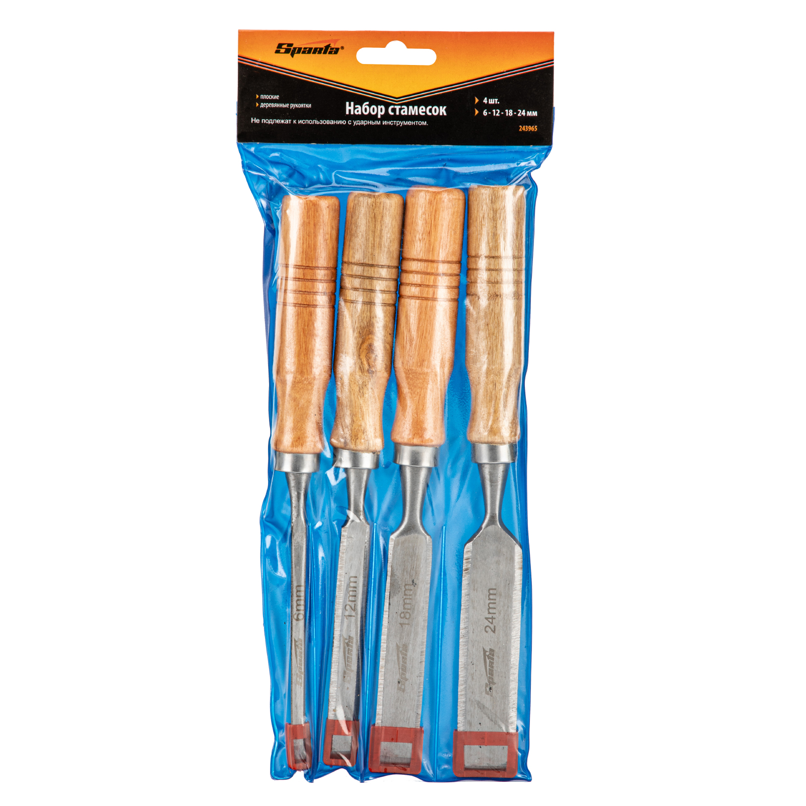 Набор стамесок, 6-12-18-24 мм, плоские, деревянные рукоятки Sparta в Челябинске