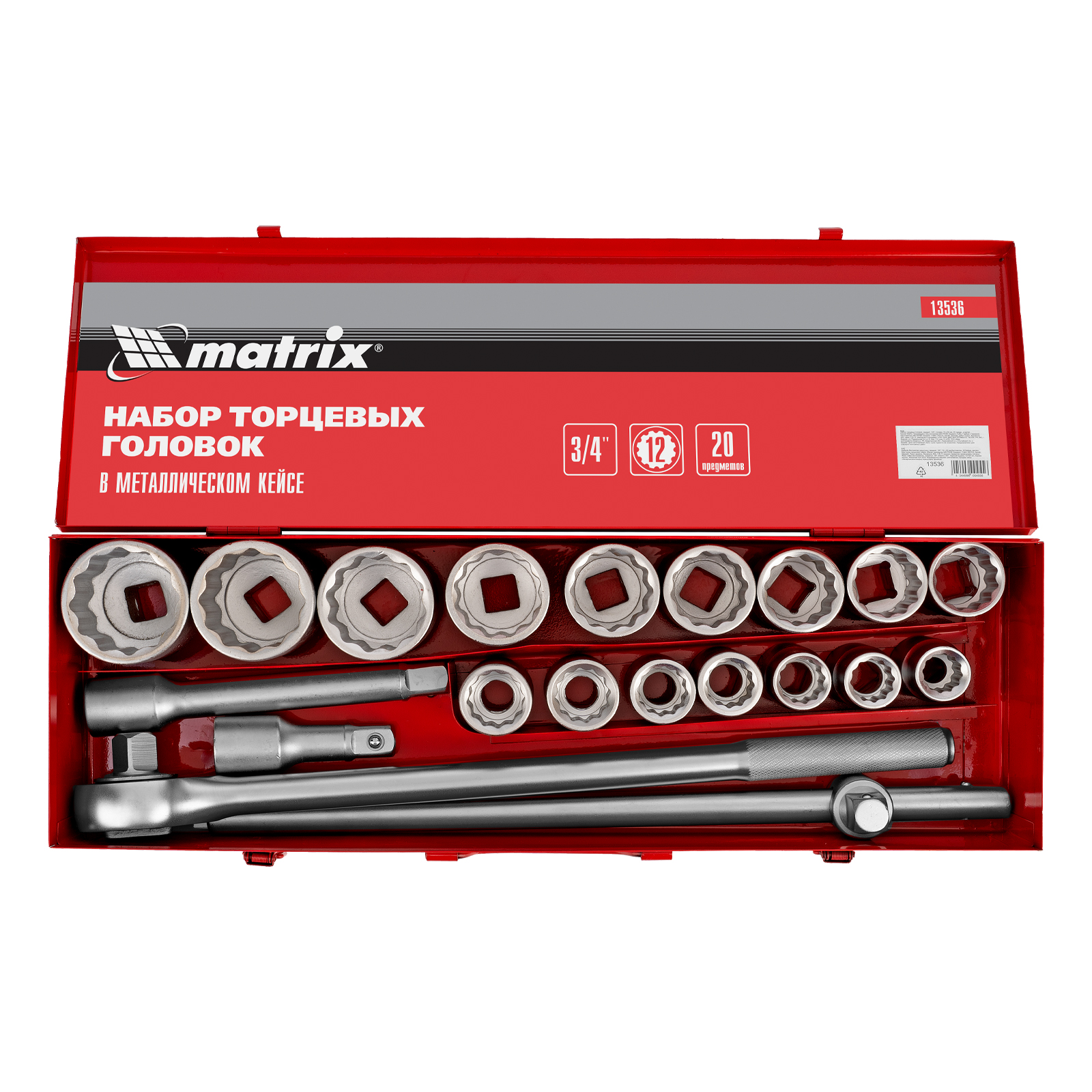 Набор торцевых головок 3/4", головки 19 х 50 мм, 20 предметов, в метал. боксе Matrix в Челябинске