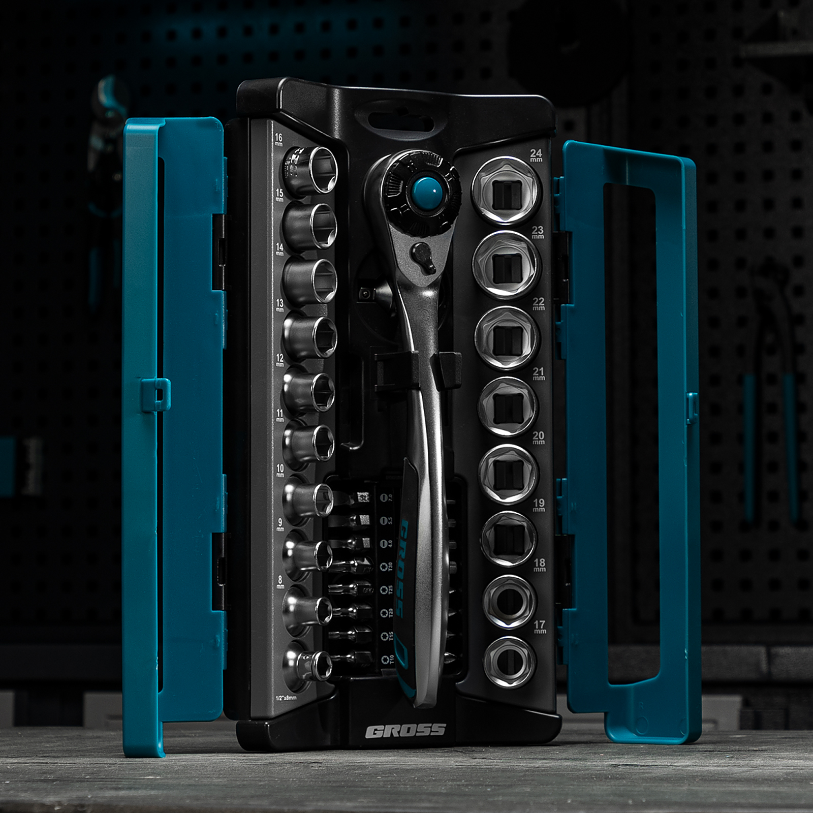Набор торцевых головок, трещотка 120 зубьев, 1/2", CrV, 36 предметов Gross в Челябинске