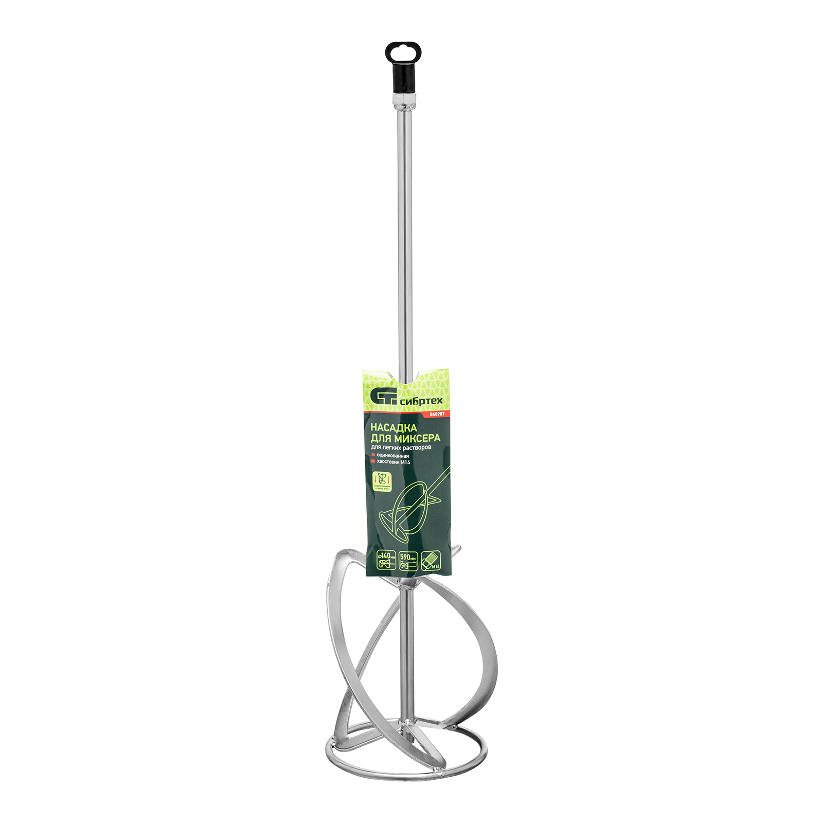 Насадка для миксера, для легких растворов, 140 х 590 мм, оцинкованная, хвостовик резьба М14 Сибртех в Челябинске